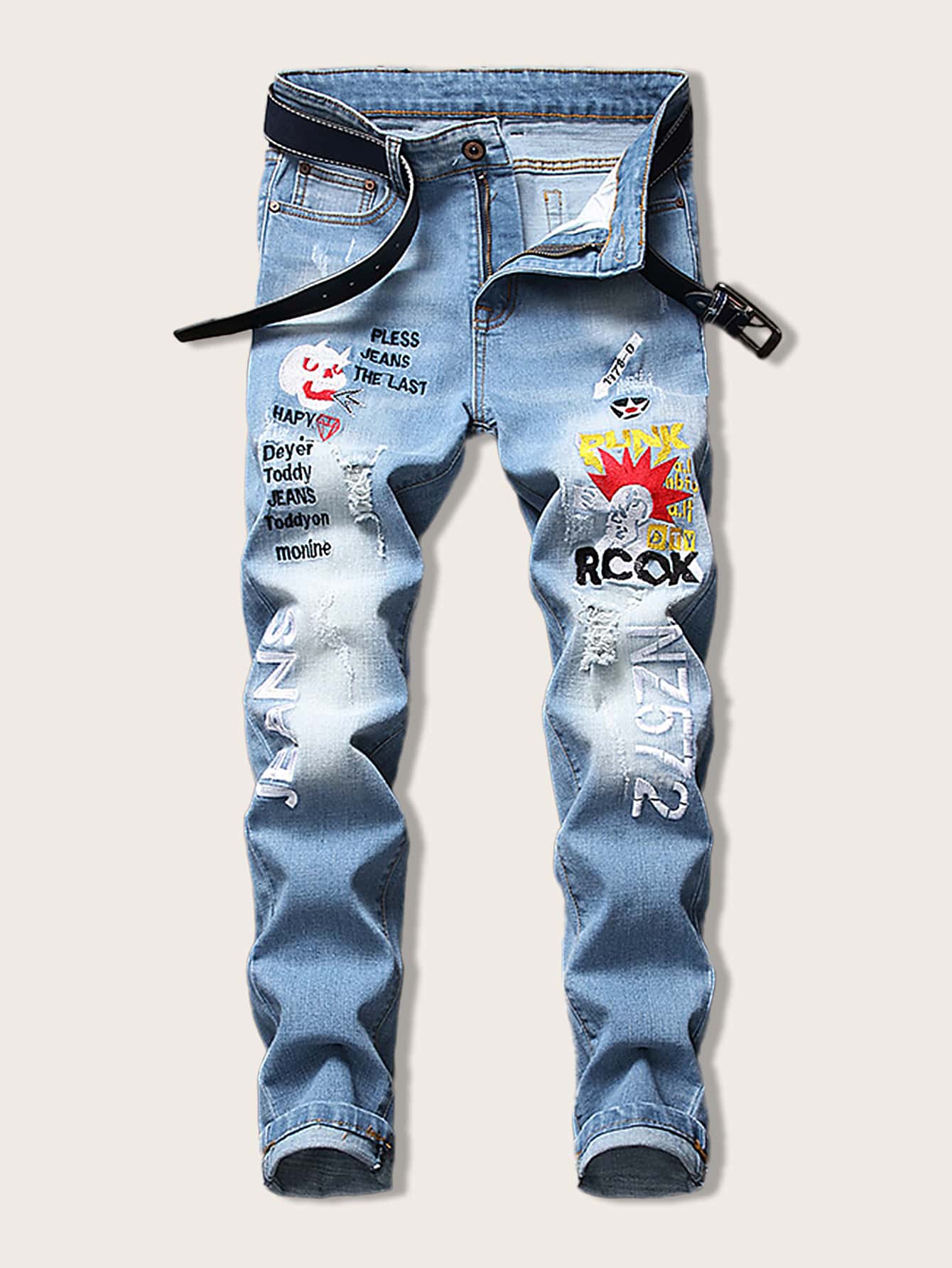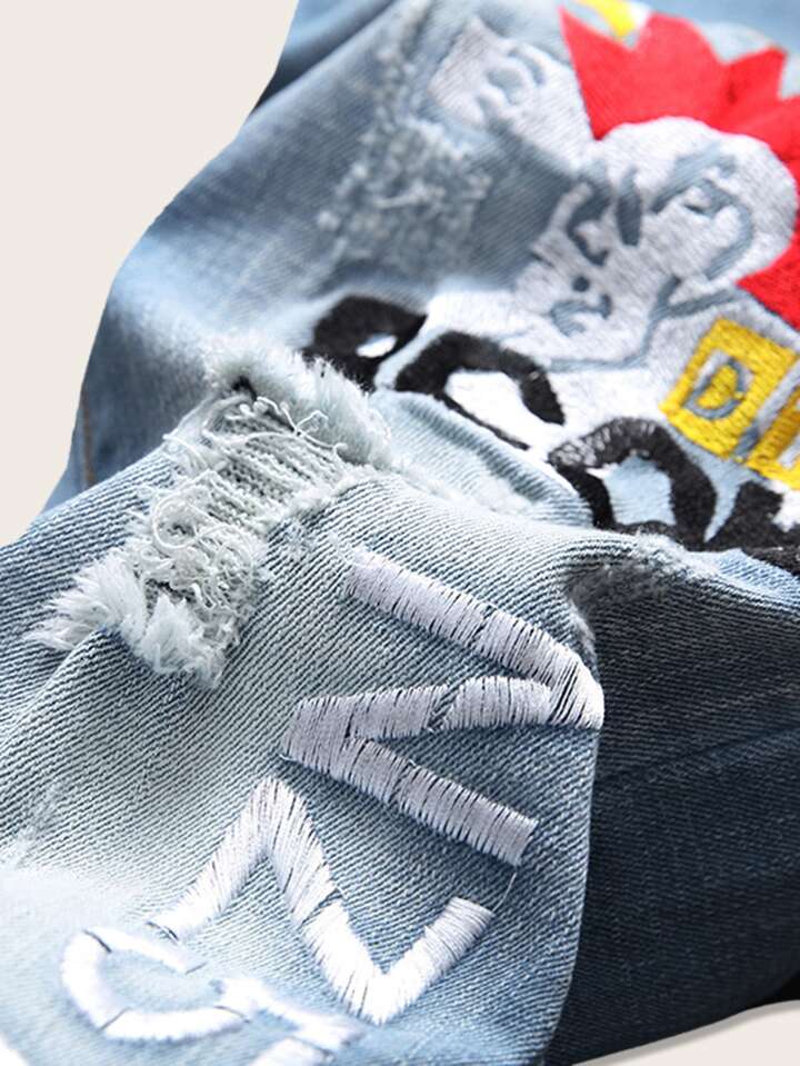 Jeans rotos de chicos con bordado de letra
