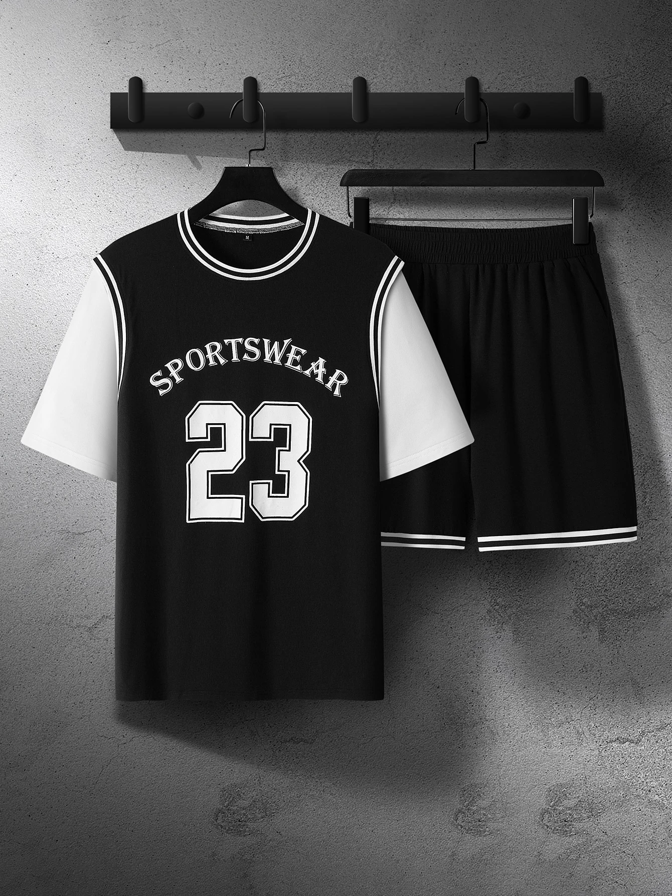 Hombres Camiseta 2 en 1 con estampado de letra & Shorts