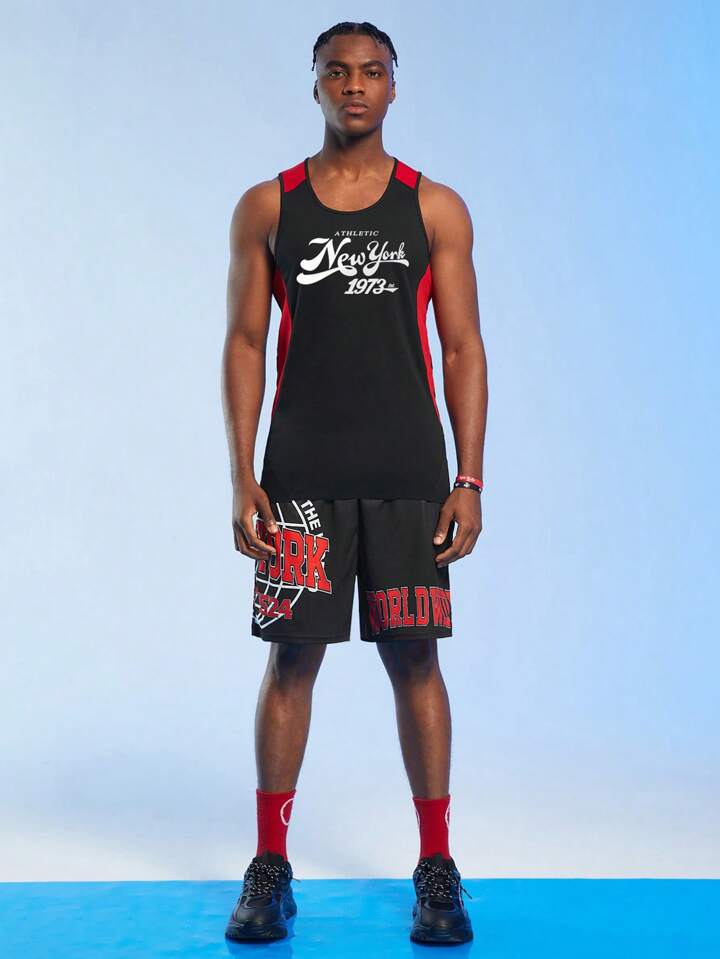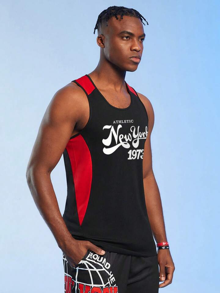 Hombres Top tank deportivo con estampado de letra de color combinado