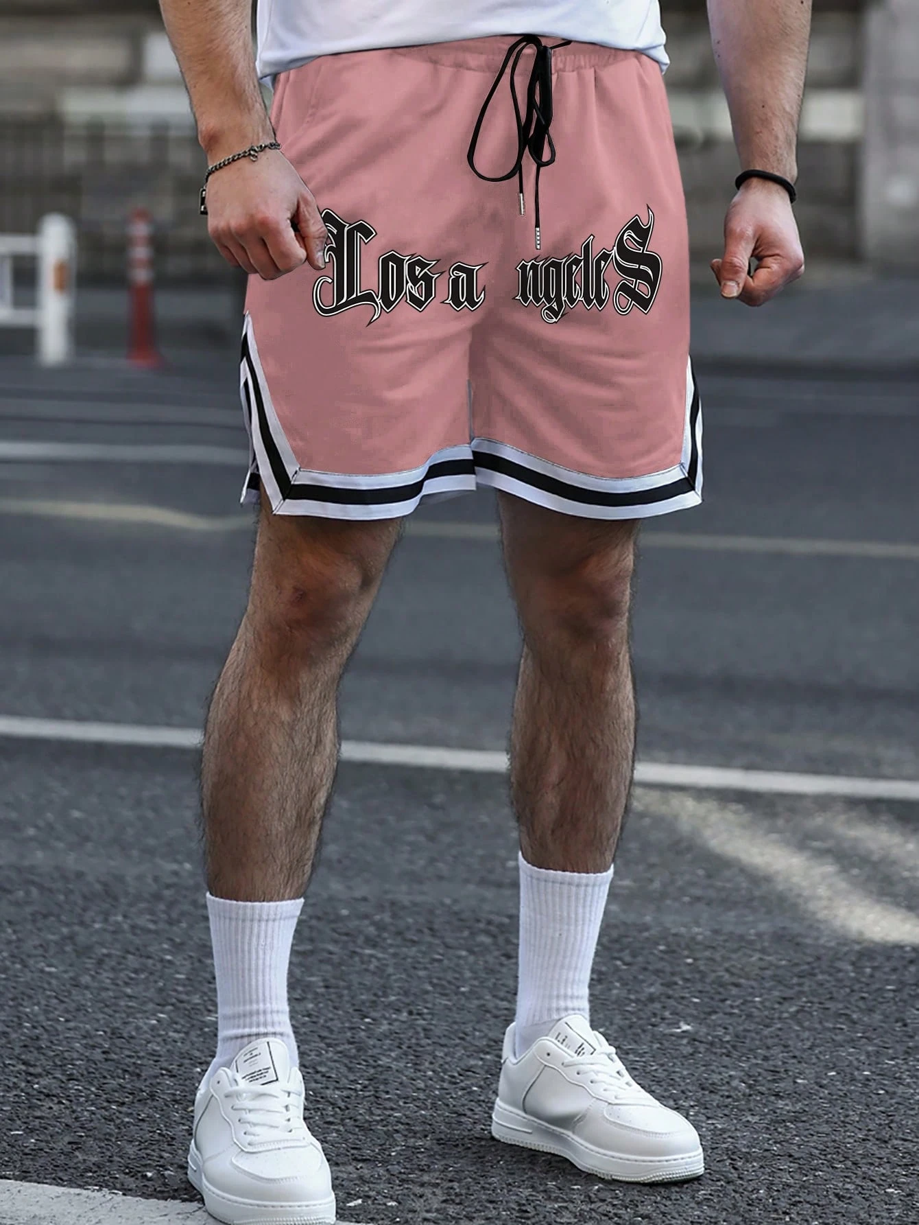 Hombres Shorts con estampado de letra con cinta en contraste de cintura con cordón