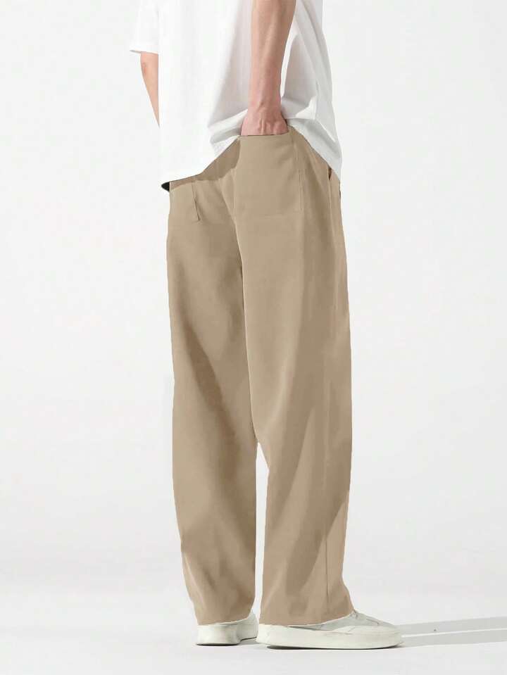 Pantalones Holgados De Pierna Recta Con Cintura Ajustable Y Gráficos De Letras Para Hombres