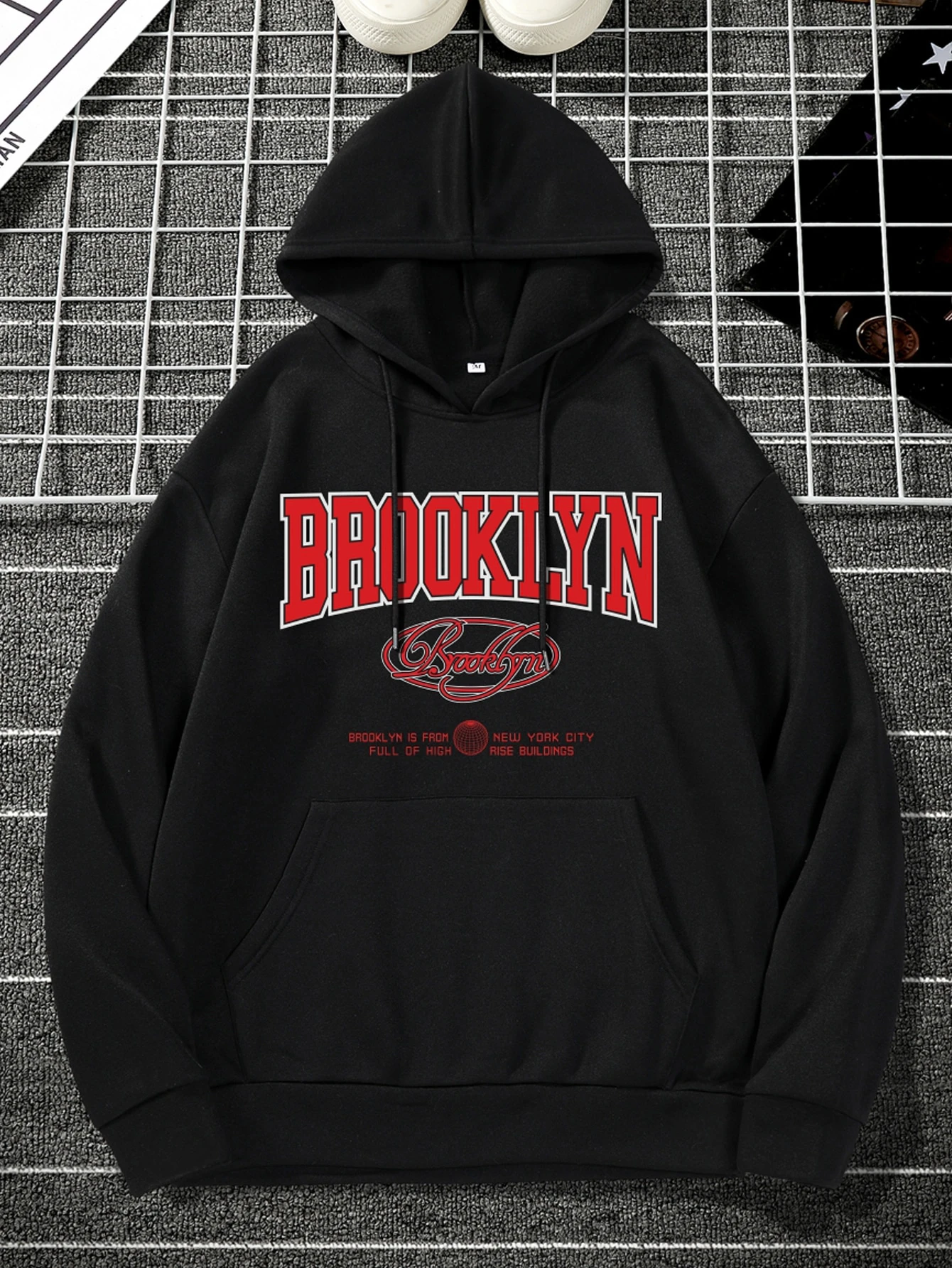 Hombres Capucha con estampado de letra con bolsillo de canguro con cordón