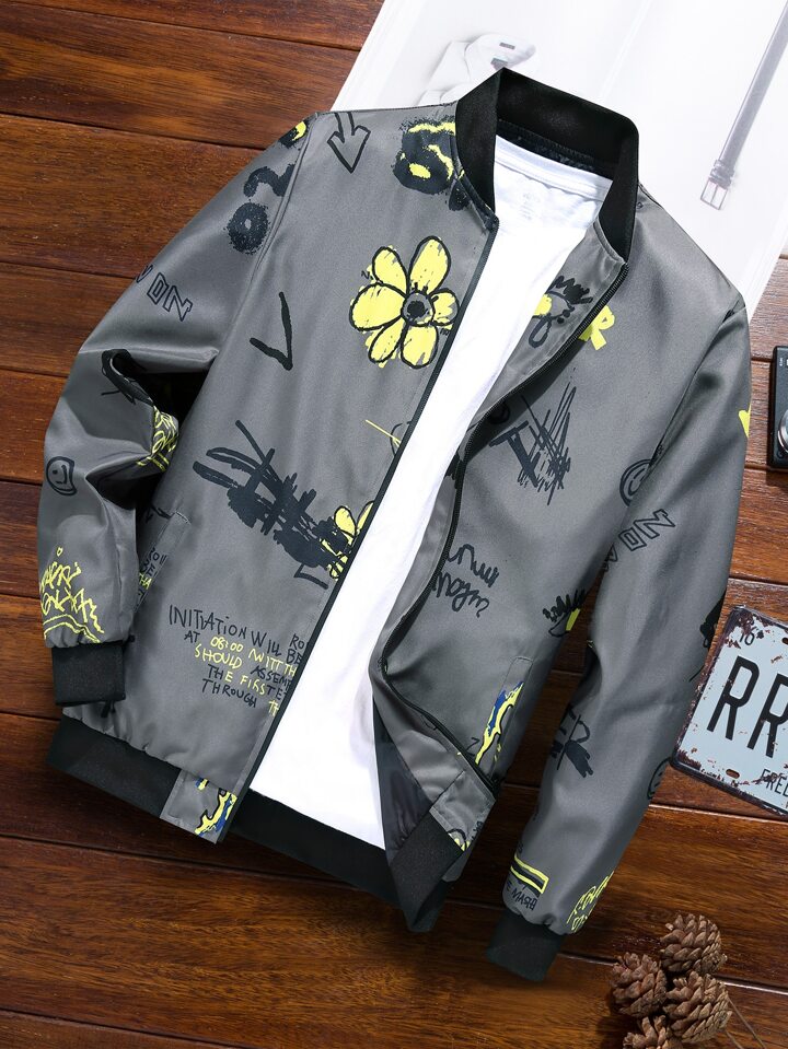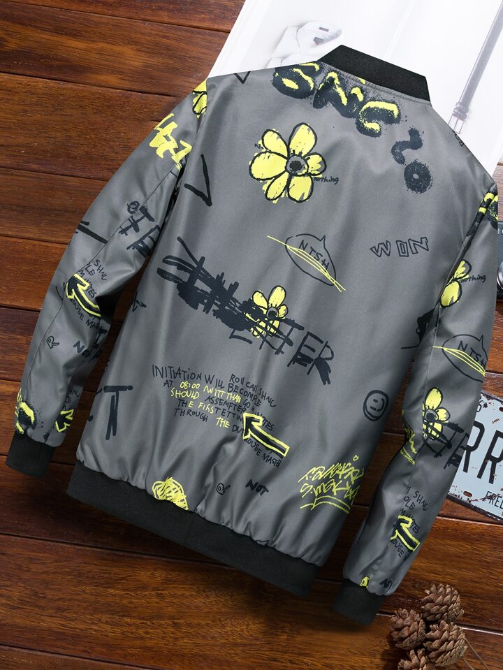 Hombres Cazadora tipo bomber con estampado de letra y dibujo cremallera