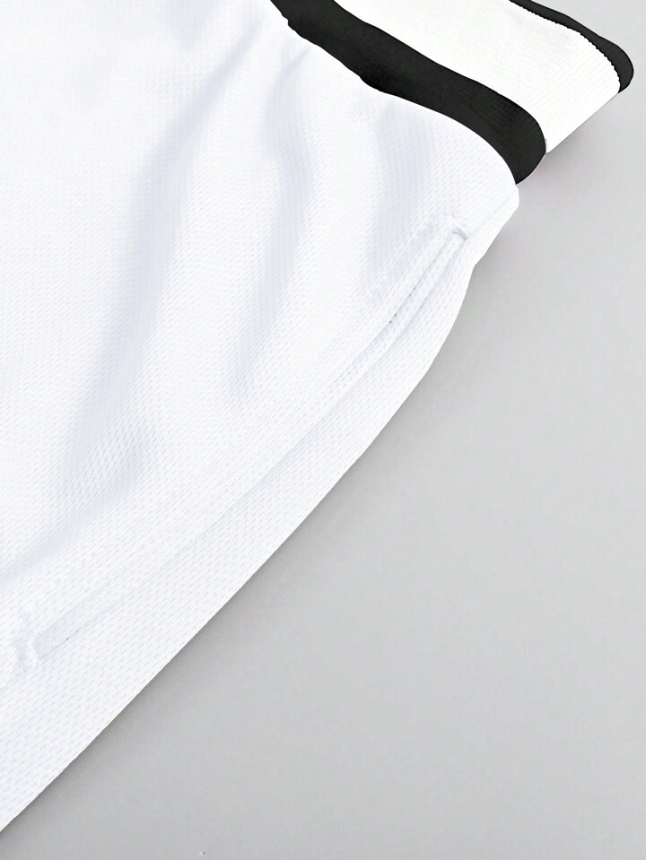 Pantalones cortos con cordón en la cintura, con gráfico de letras y ribete a rayas para hombres
