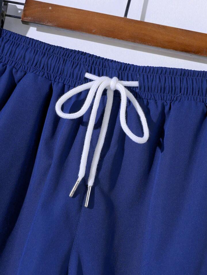 Hombres con estampado de letra de dos tonos Camisa & de cintura con cordón Shorts sin camiseta