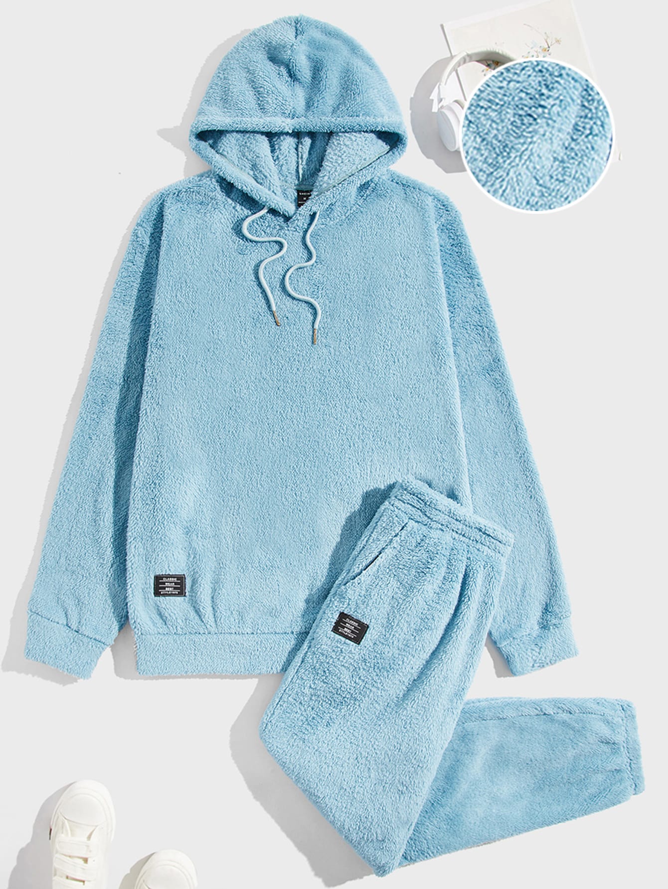Hombres Pantalones con capucha con parche de letra con cordón de franela