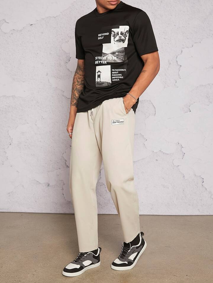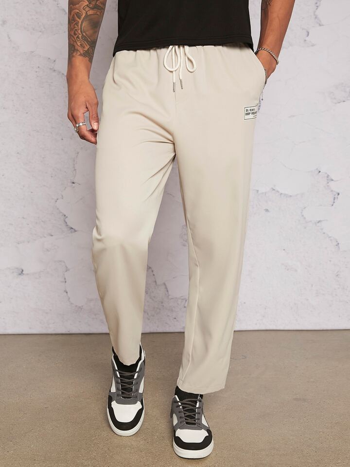 Hombres Pantalones con parche de letra de cintura con cordón