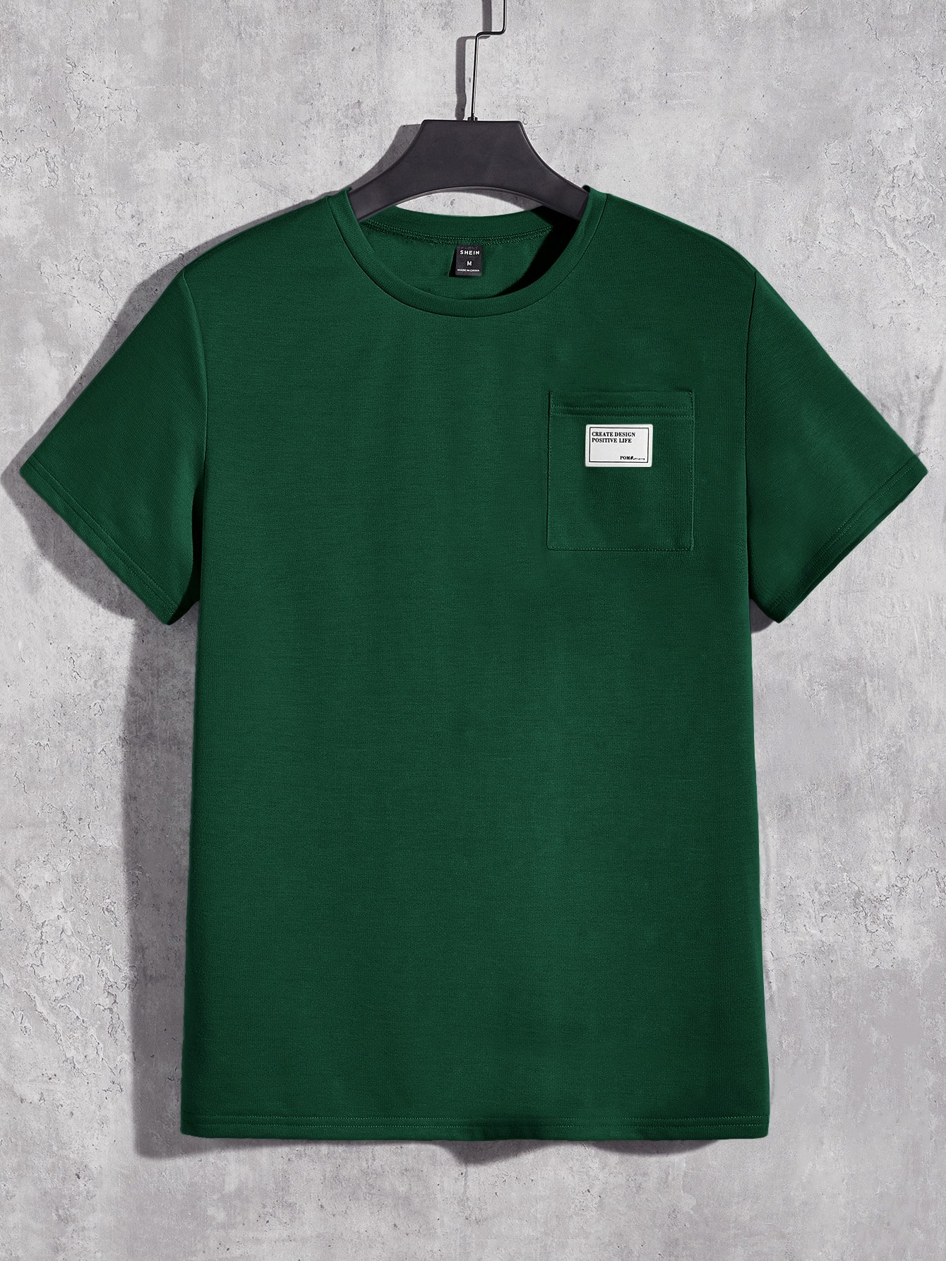 Hombres Camiseta con parche de letra con bolsillo delantero
