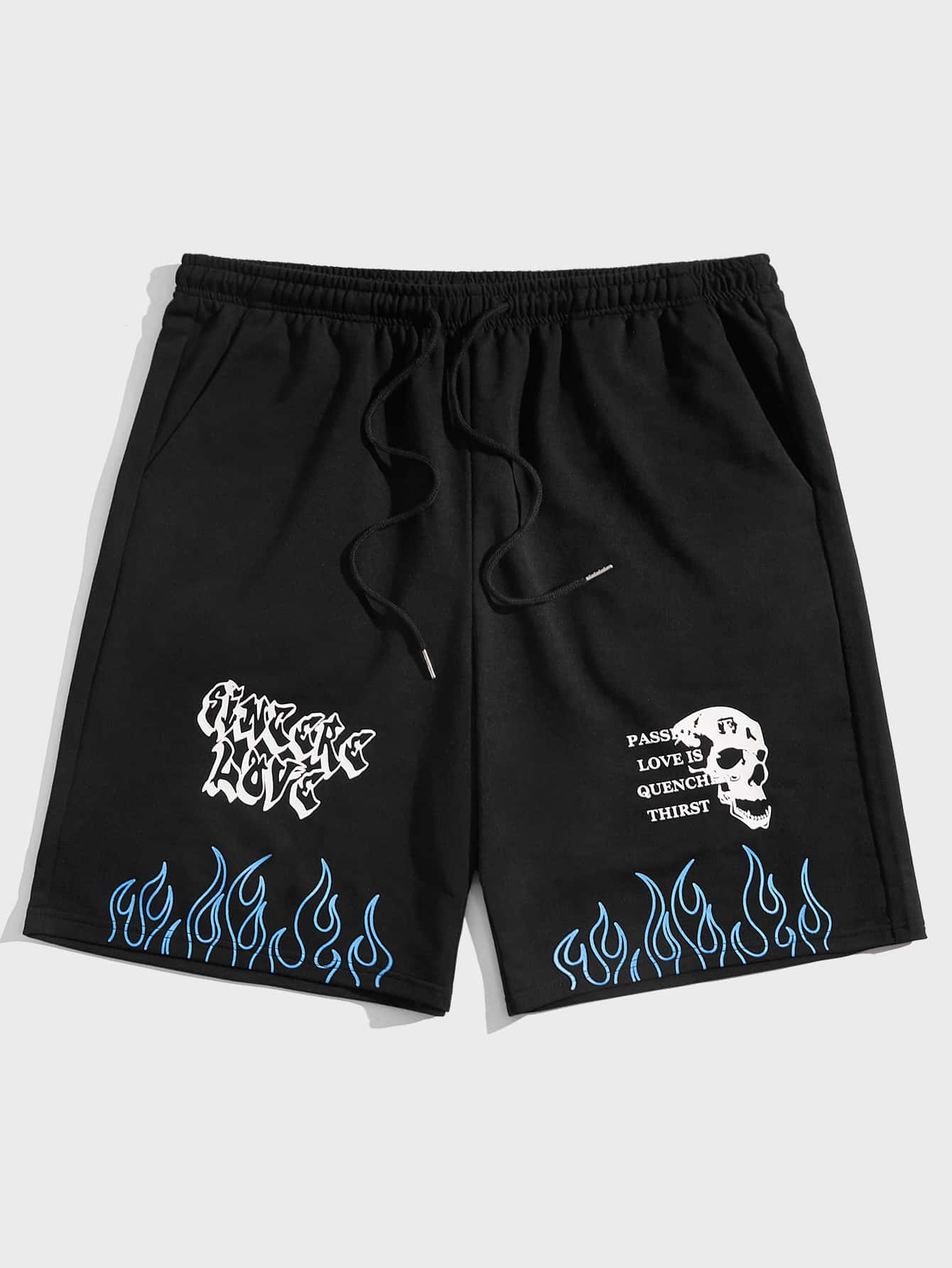 Hombres Shorts con cordón con letra con estampado de cráneo