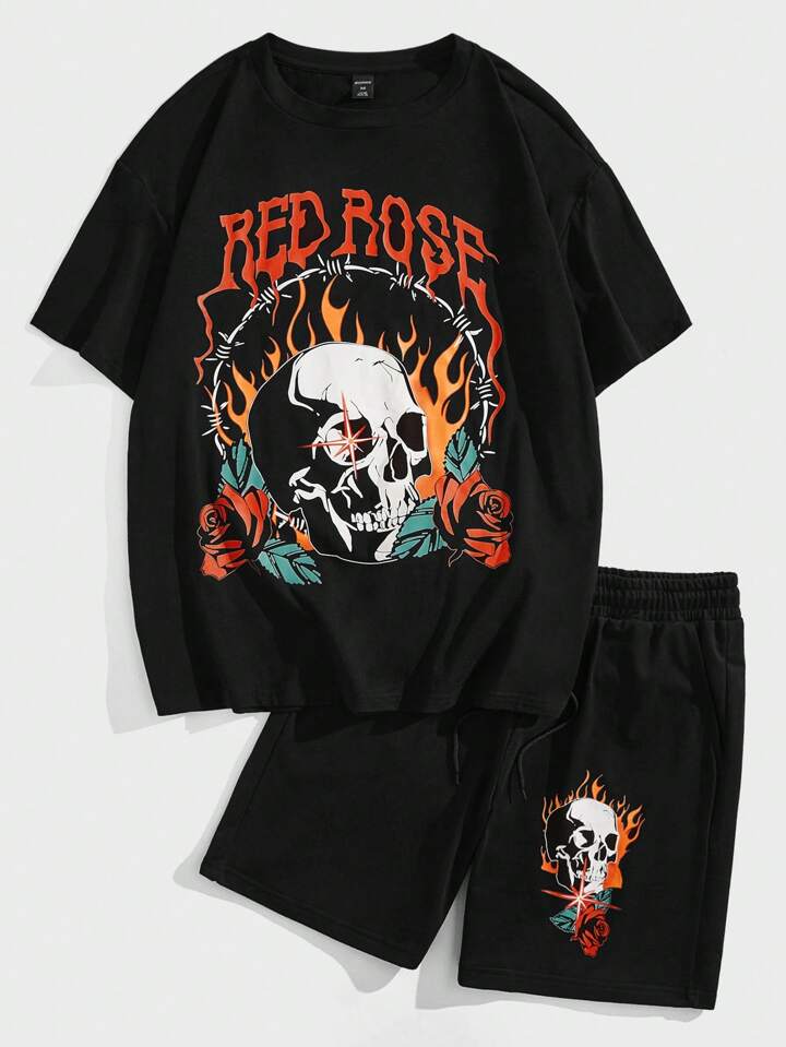 Hombres Shorts con camiseta con letra & estampado de cráneo