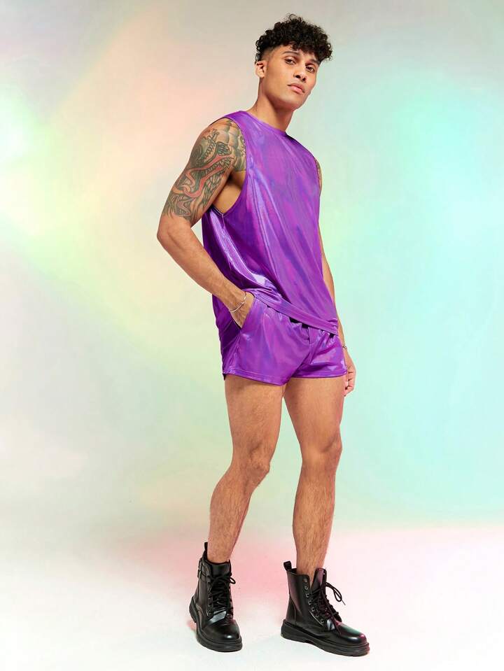 Hombres de color metálico Top tank & Shorts