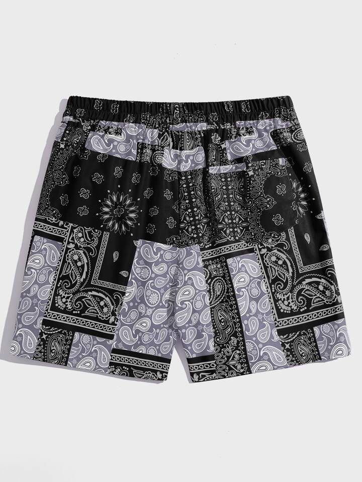 Hombres Shorts con estampado de paisley de cintura con cordón