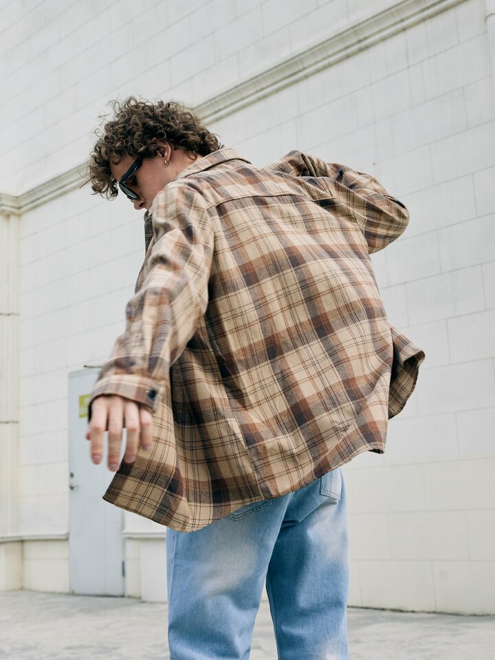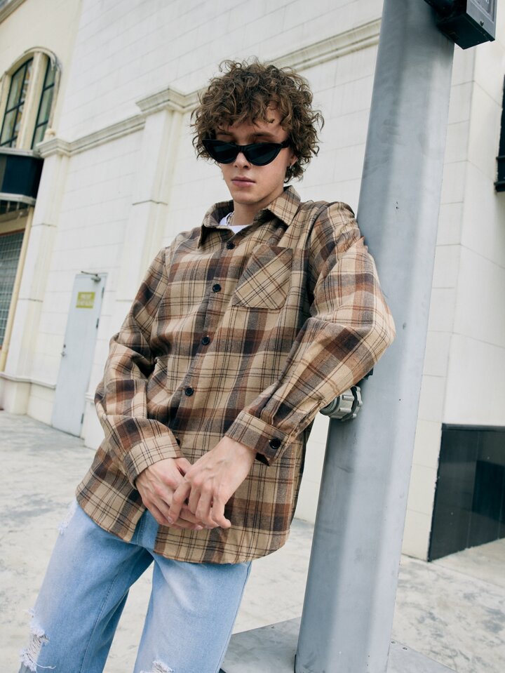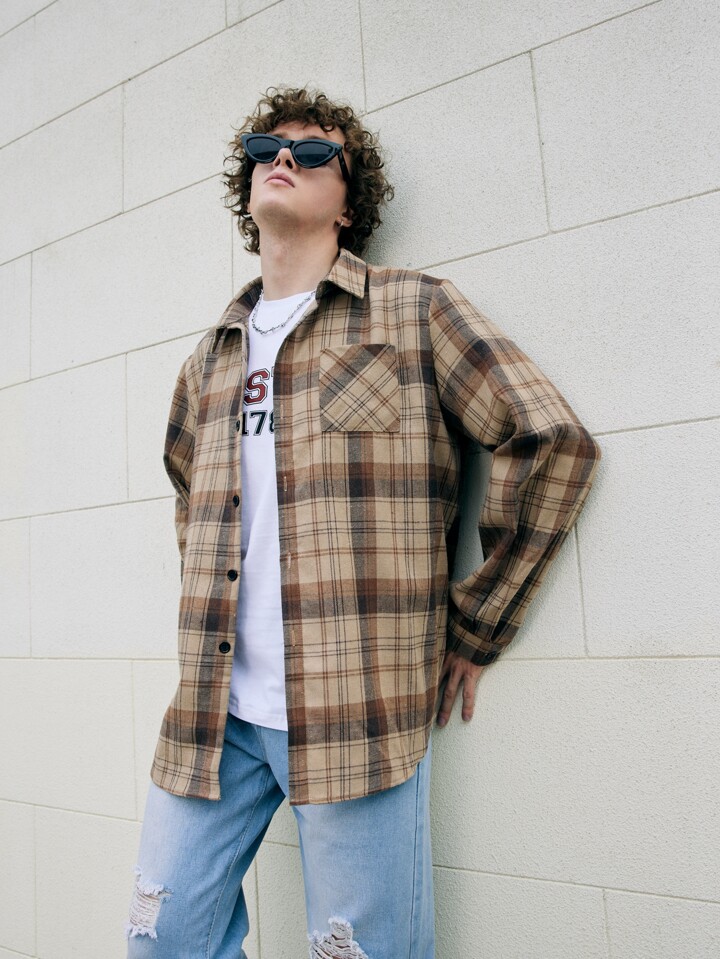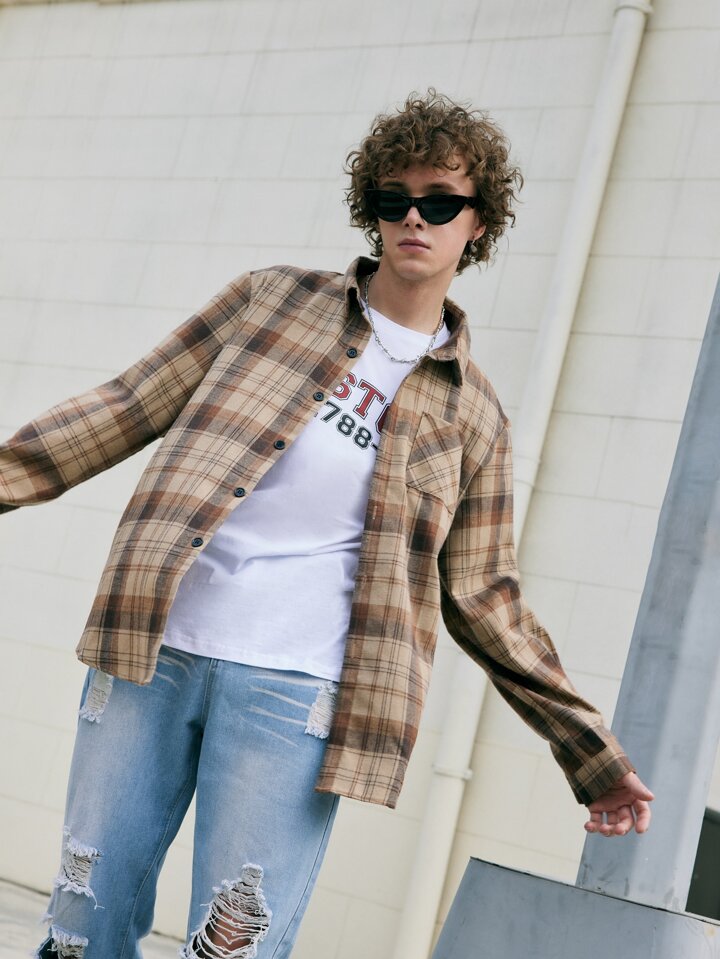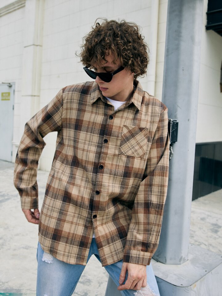 Camisa de franela de botones a cuadros para hombre con bolsillo