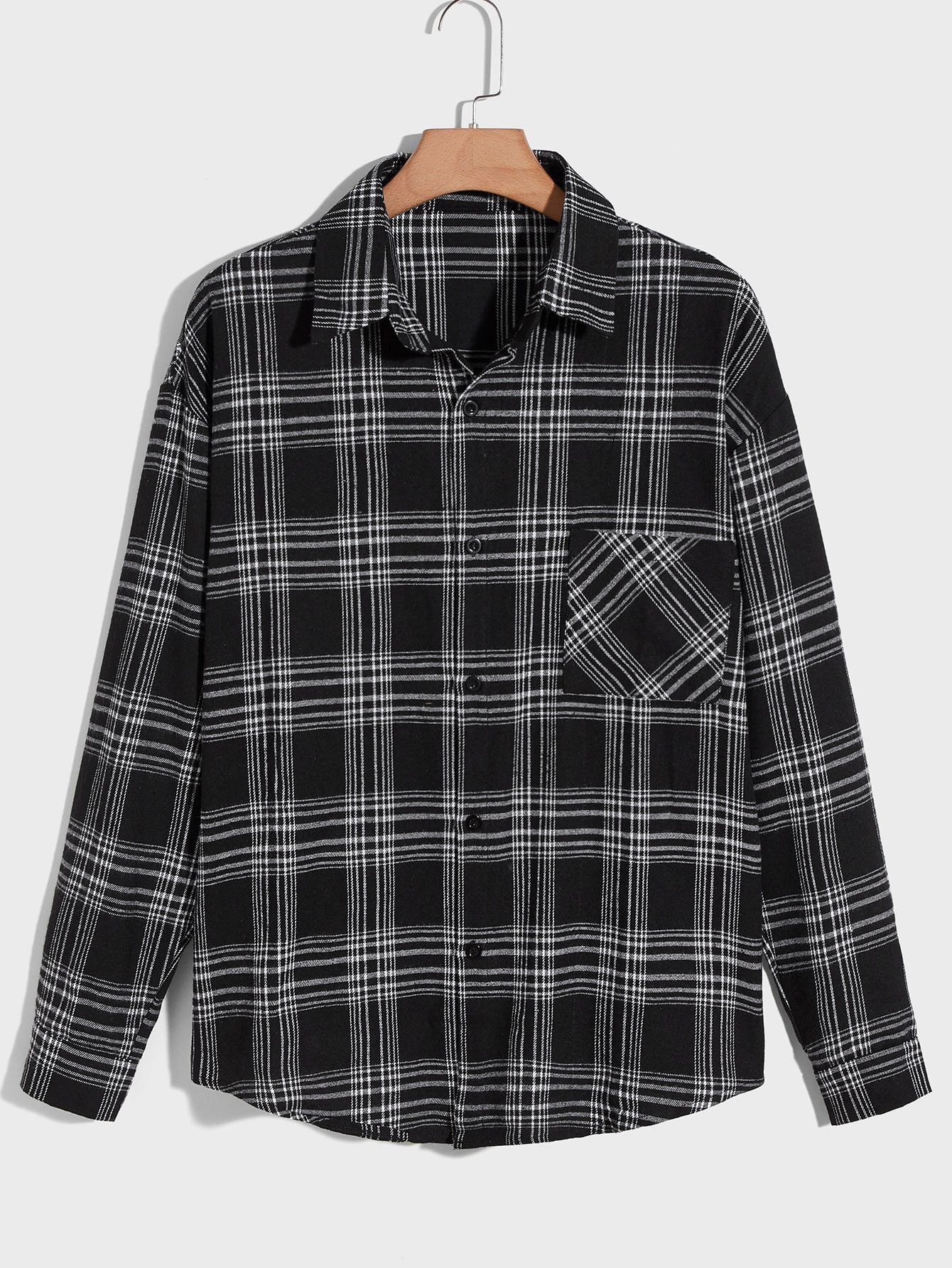 Hombres Camisa de cuadros con botón delantero con bolsillo