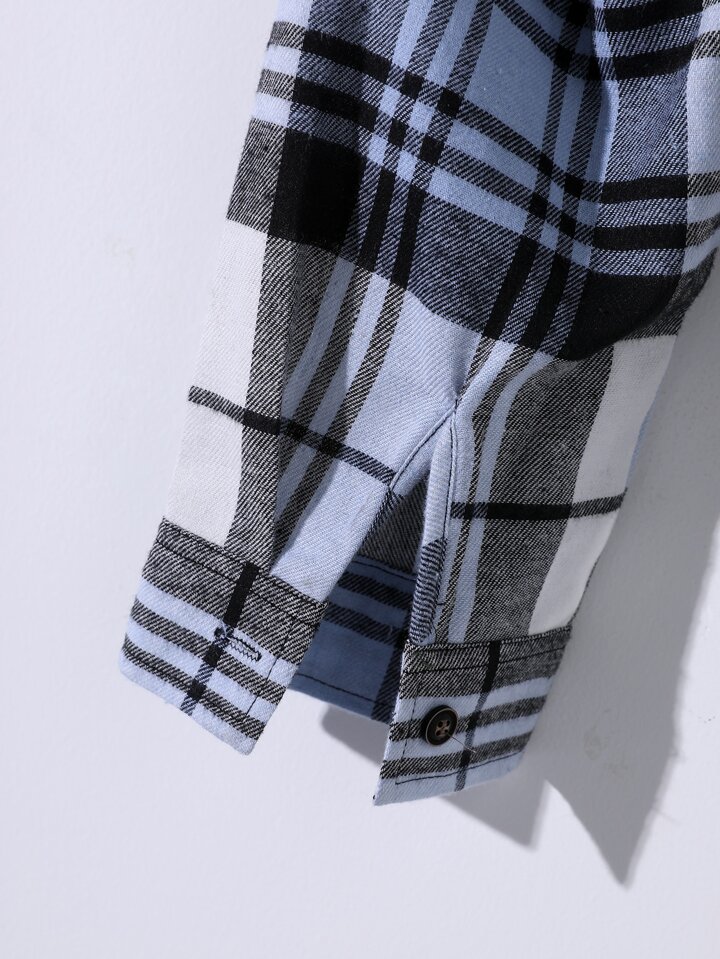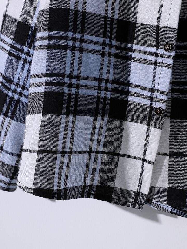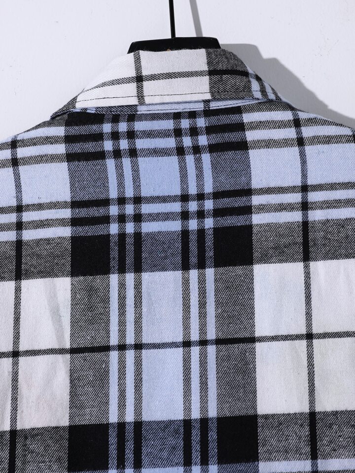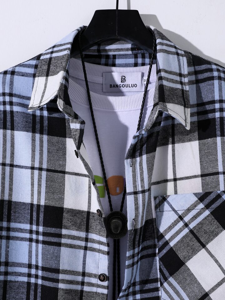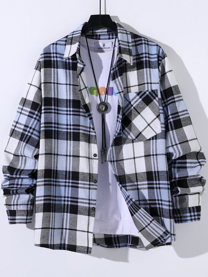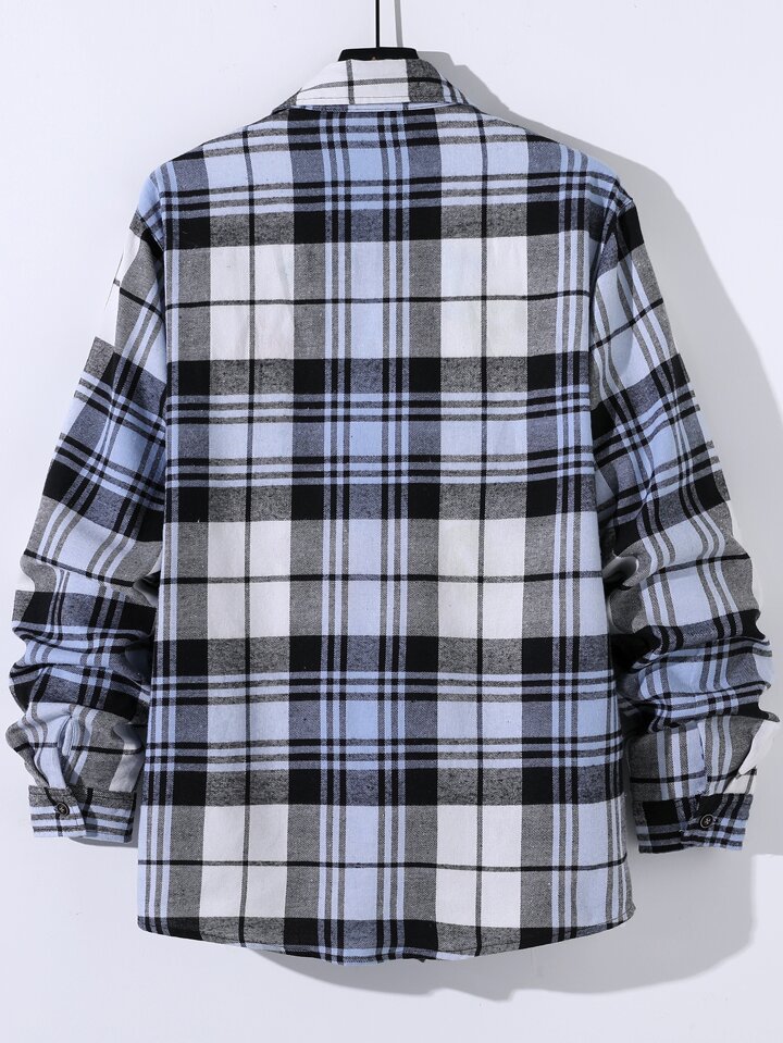 Hombres Camisa de cuadros con parche con bolsillo sin camiseta