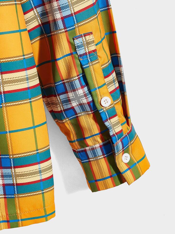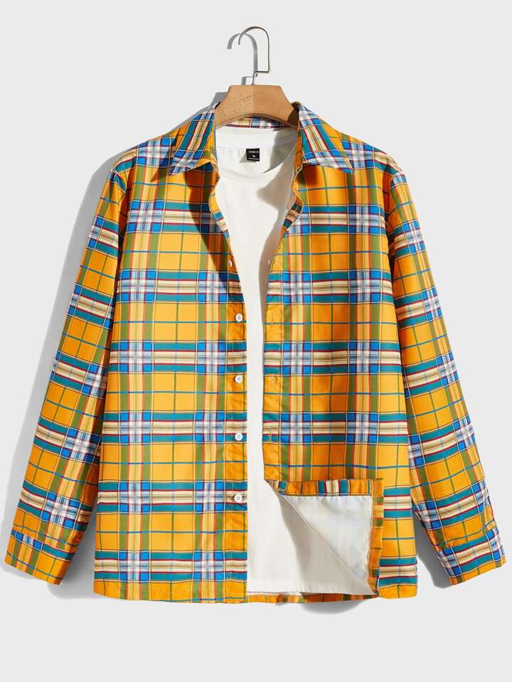 Hombres Camisa con estampado de cuadros sin camiseta