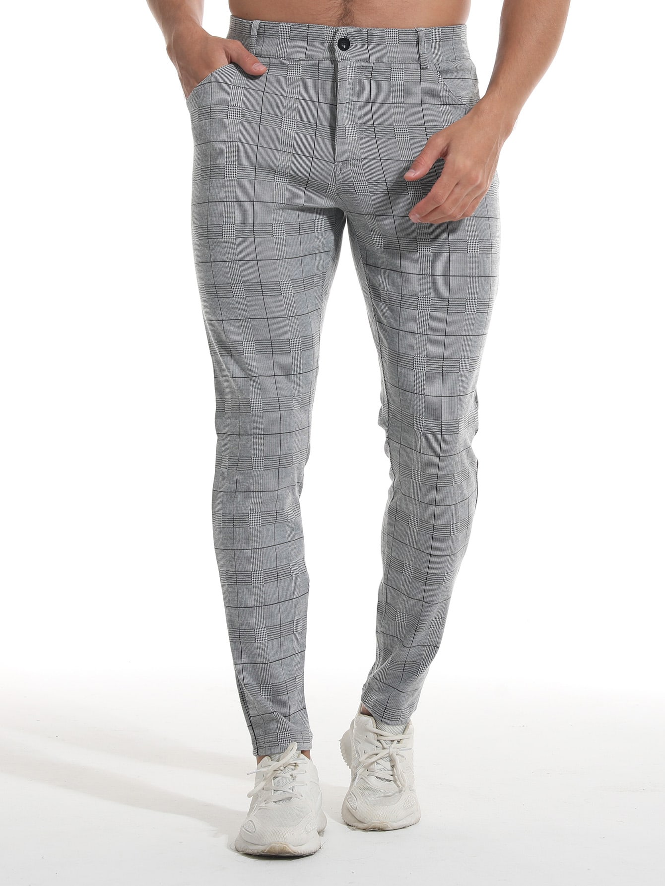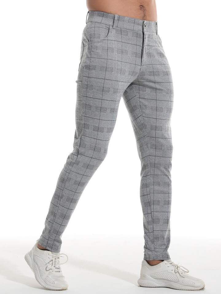 Hombres Pantalones con estampado de cuadros con bolsillo oblicuo