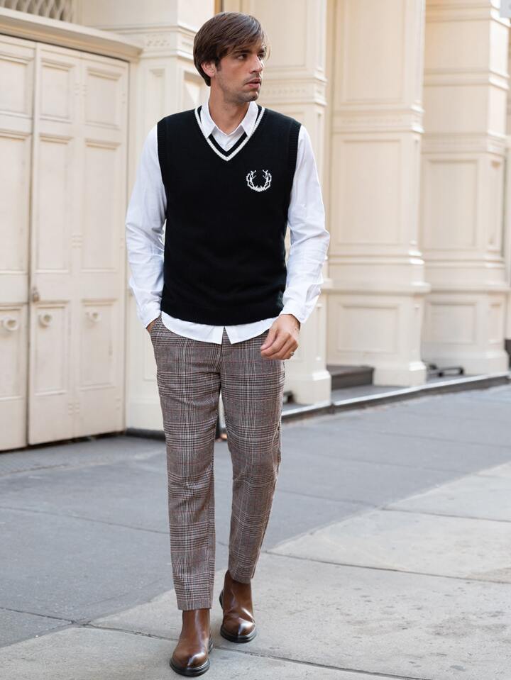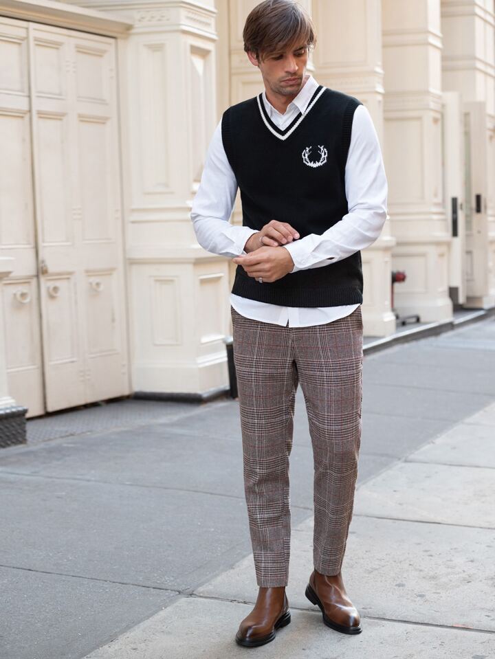 Hombres Pantalones de cuadros con bolsillo oblicuo