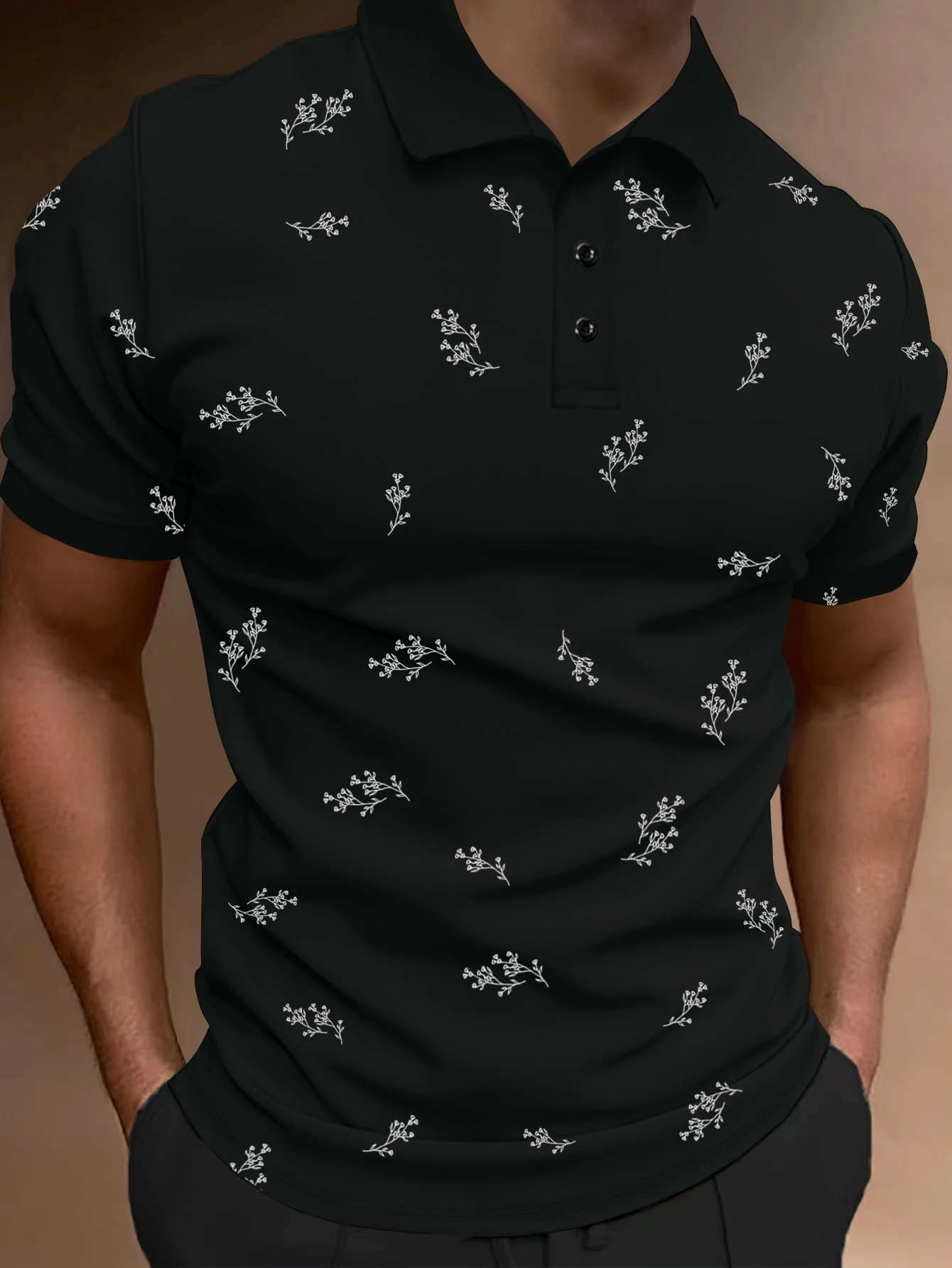 Hombres Camisa polo con estampado de plantas