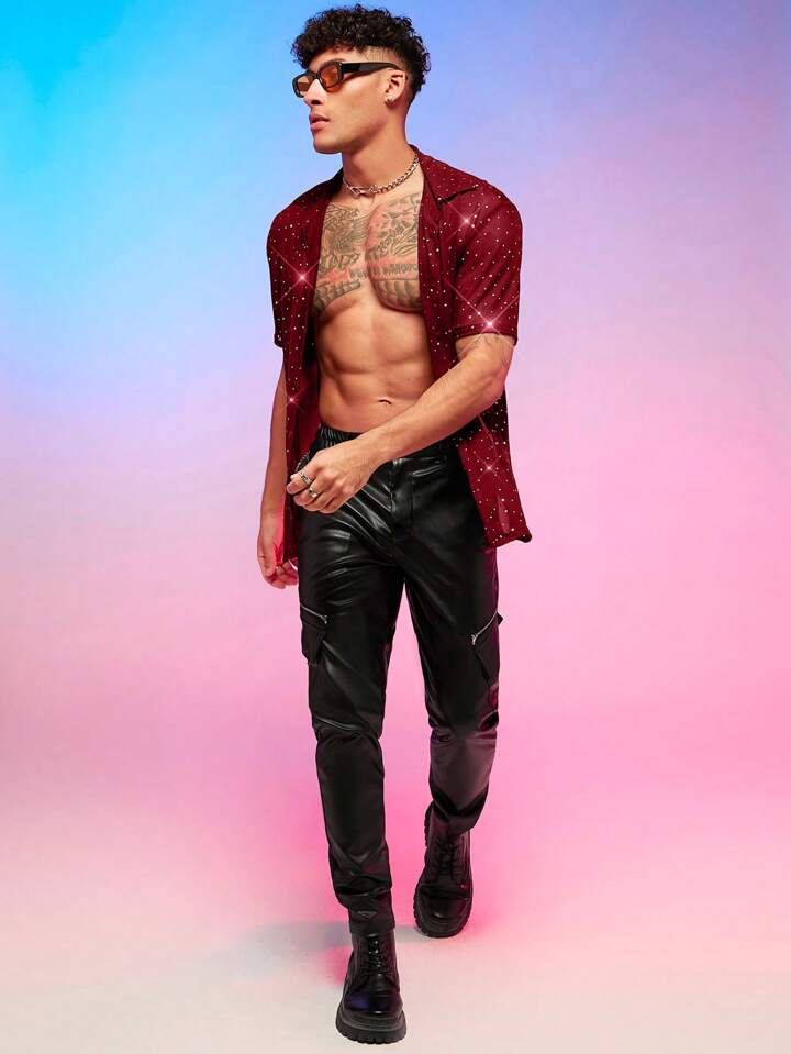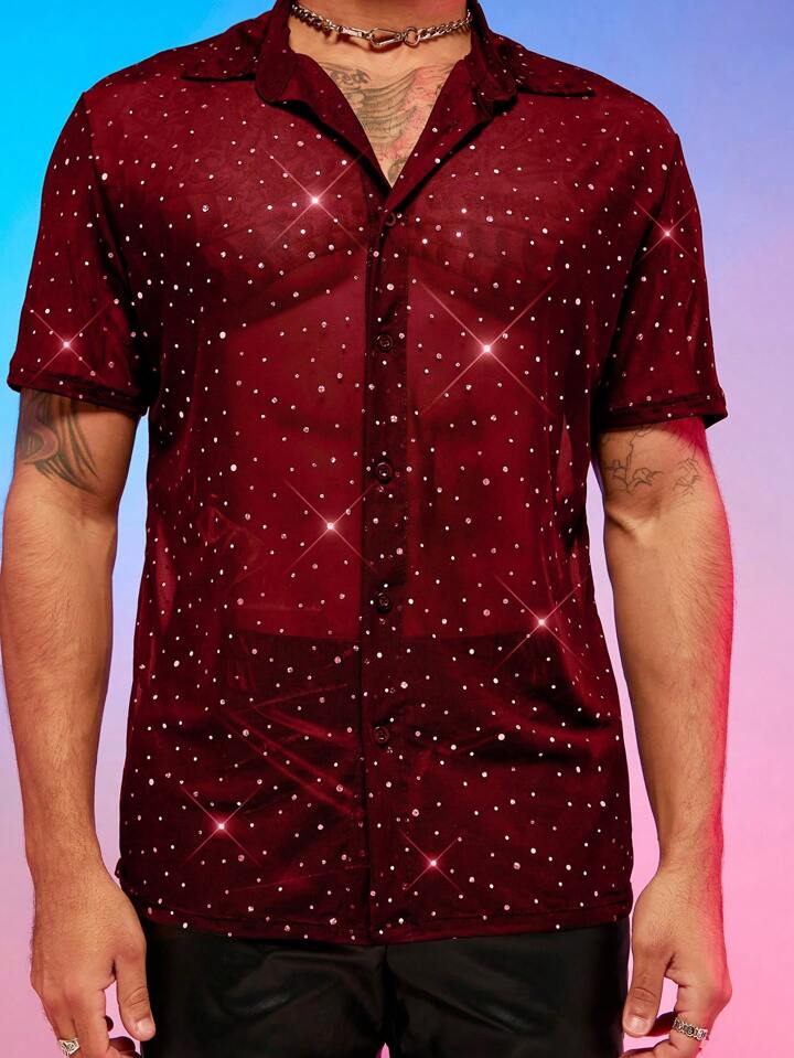 Camiseta De Malla Para Hombres Con Diamantes De Imitación Y Corte Holgado