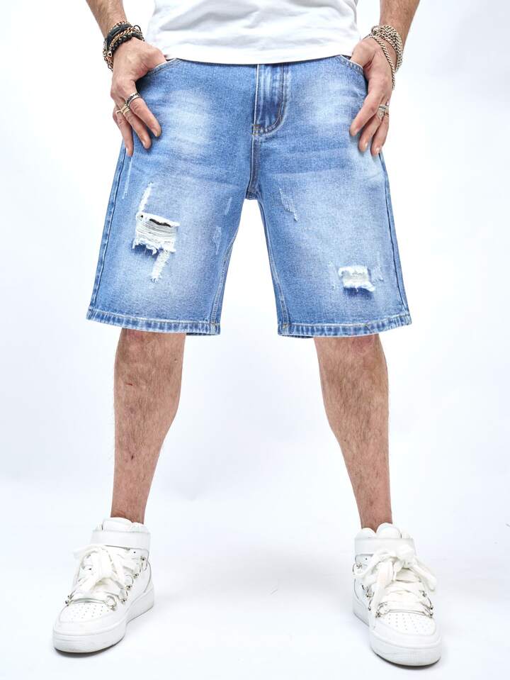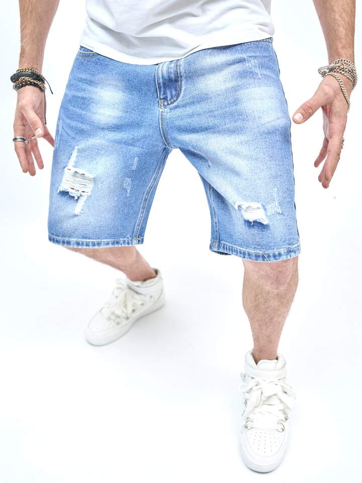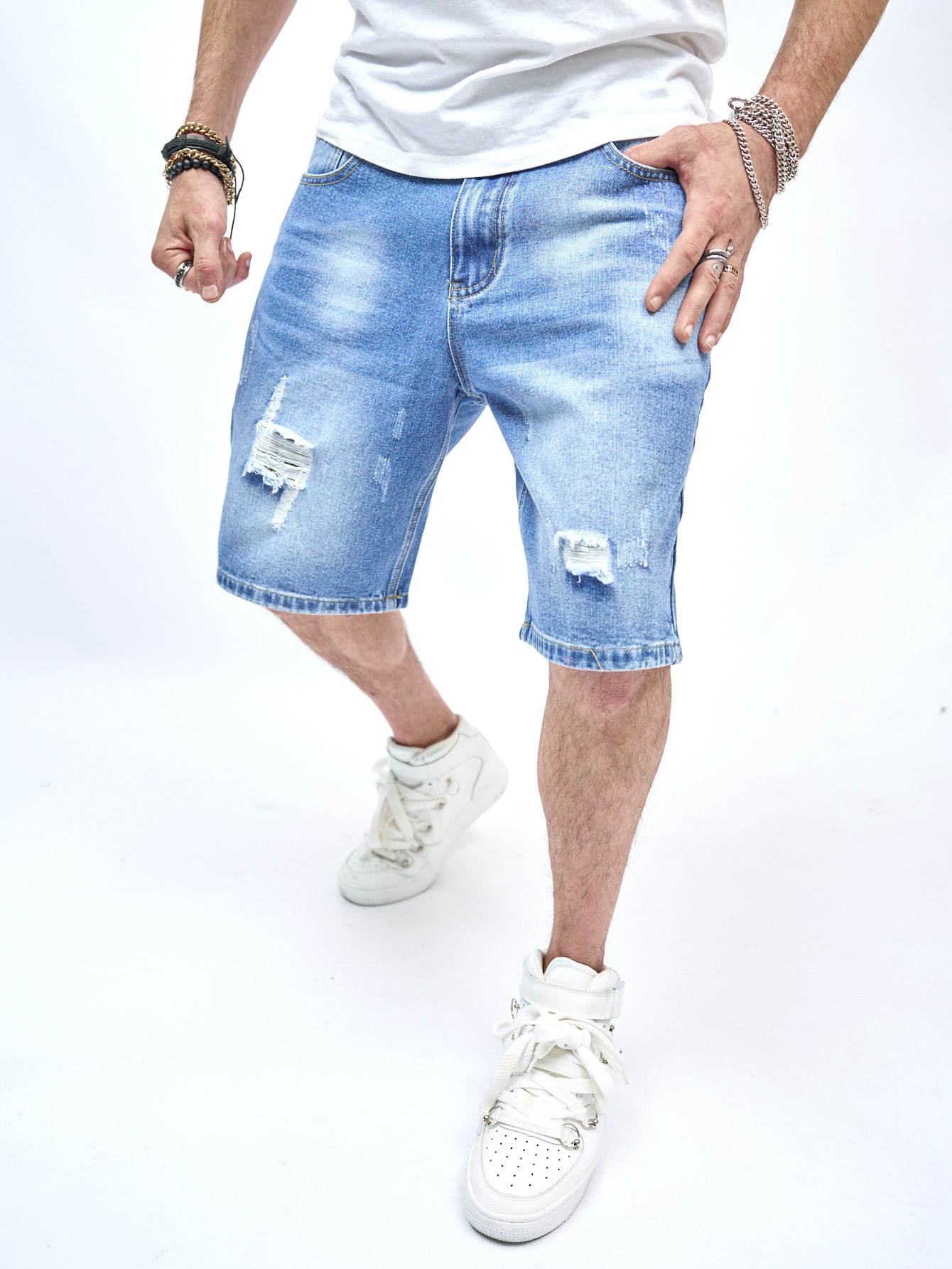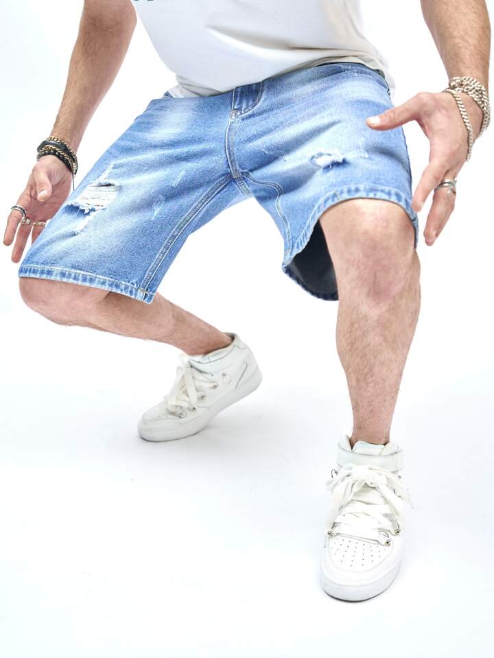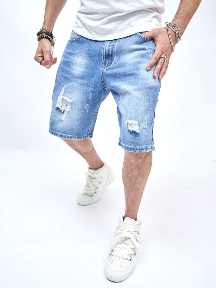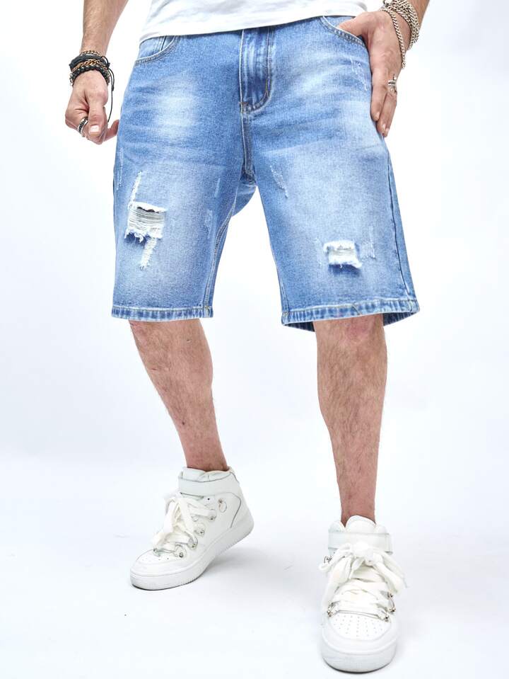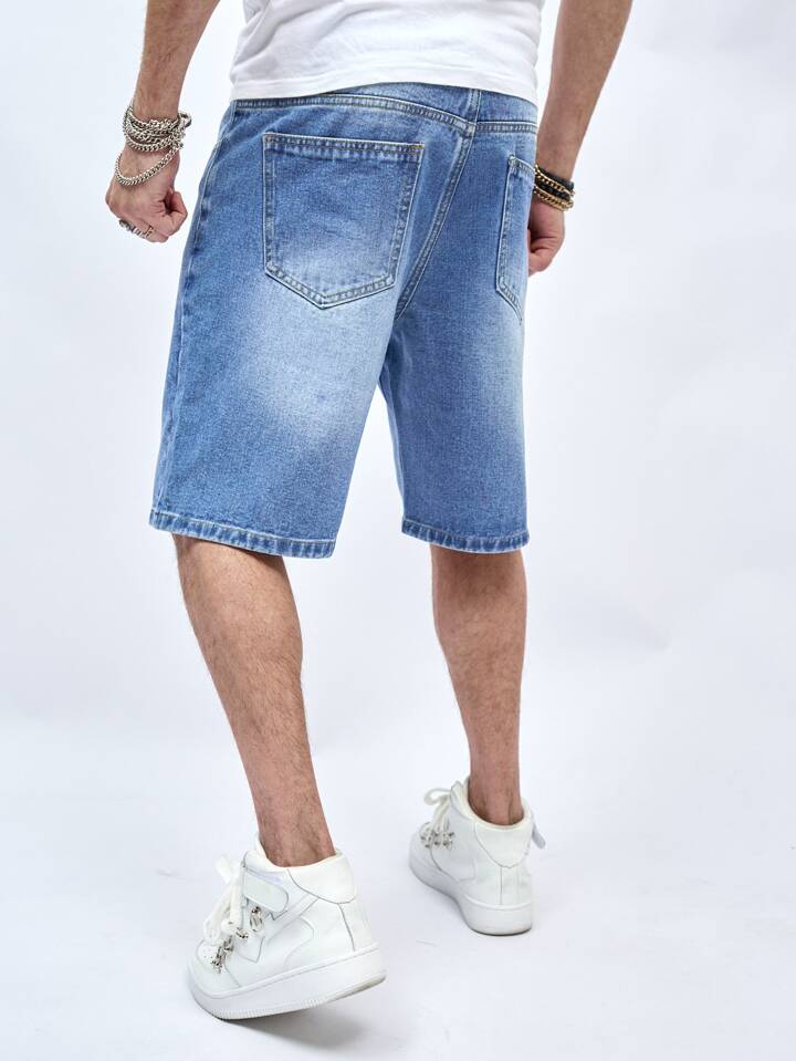 Shorts De Mezclilla Para Hombre Desgastados, Desteñidos, Descuartizados, De Ajuste Holgado