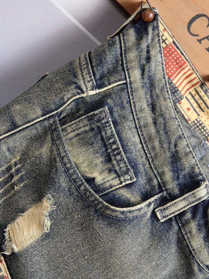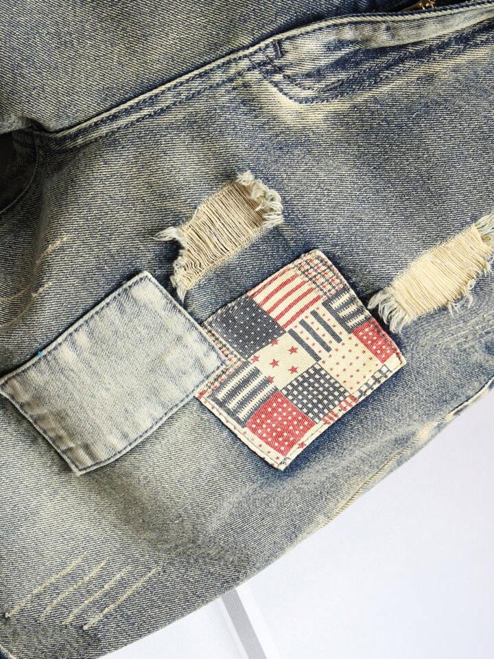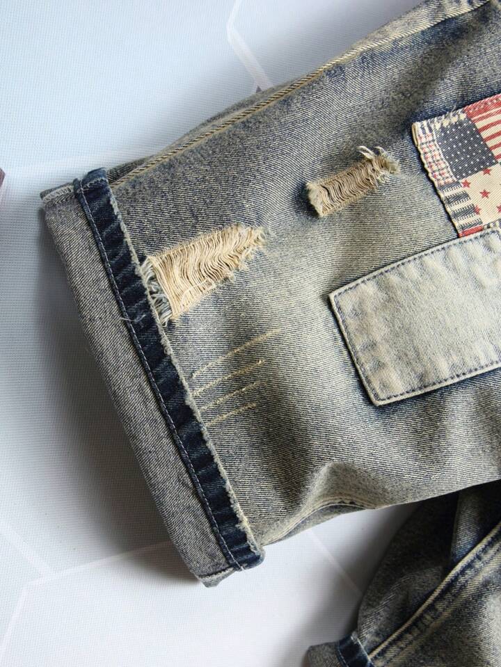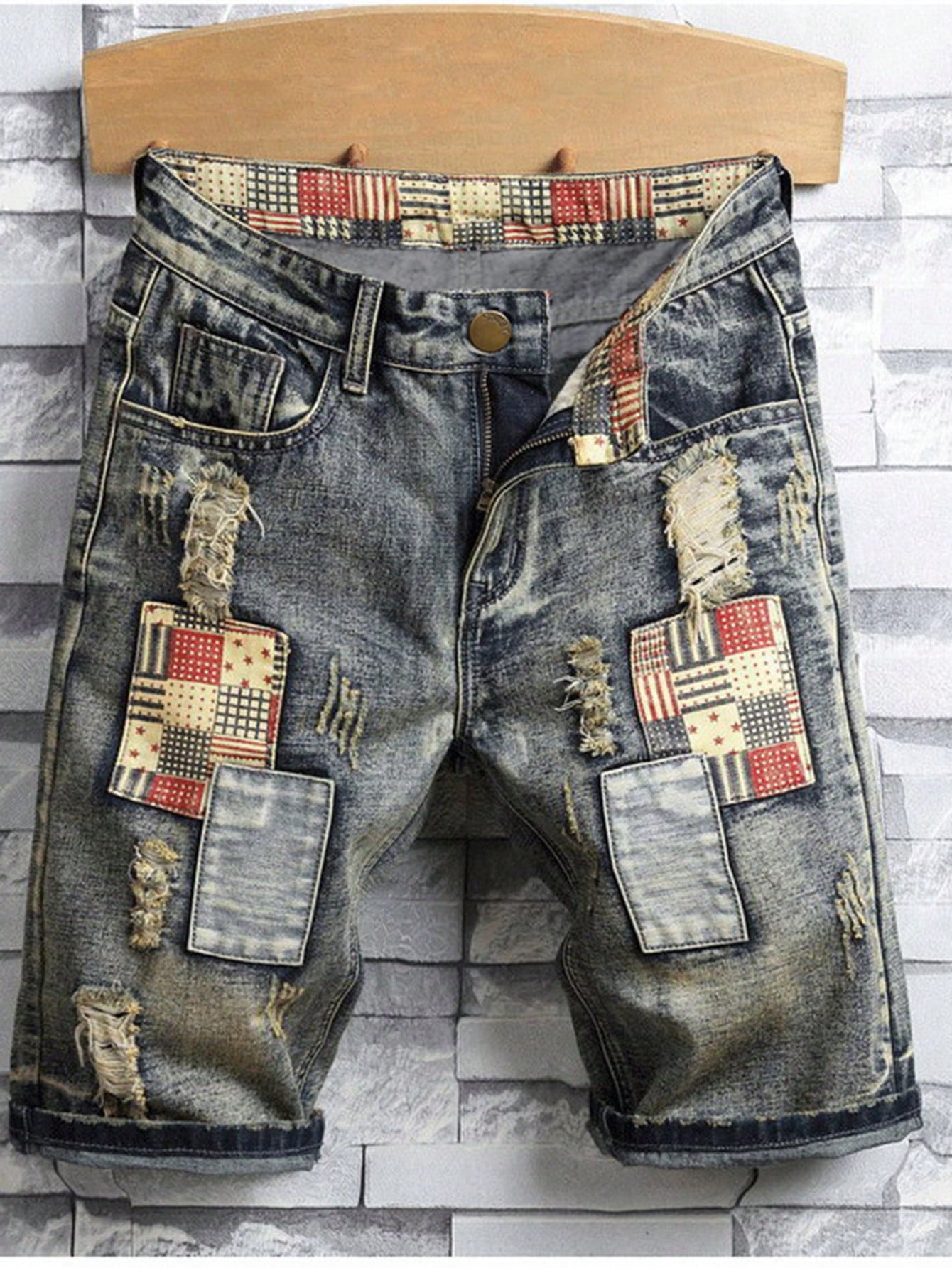 Hombres Shorts en mezclilla algodón desgarro crudo con diseño de parche