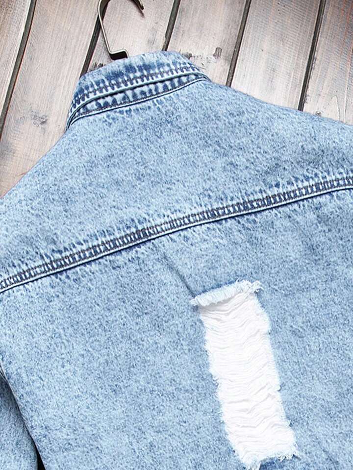 Camisa vaquera de manga larga con botones, sin camiseta, de corte desgastado, con terminación deshilachada y cruda para hombre, ideal para vacaciones y amigos