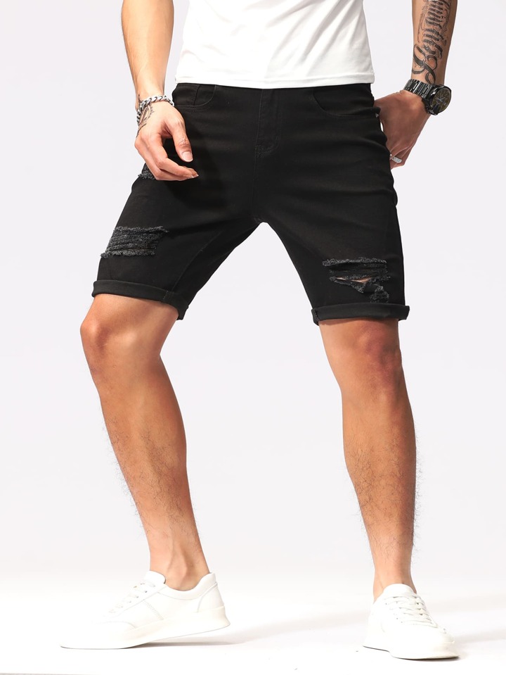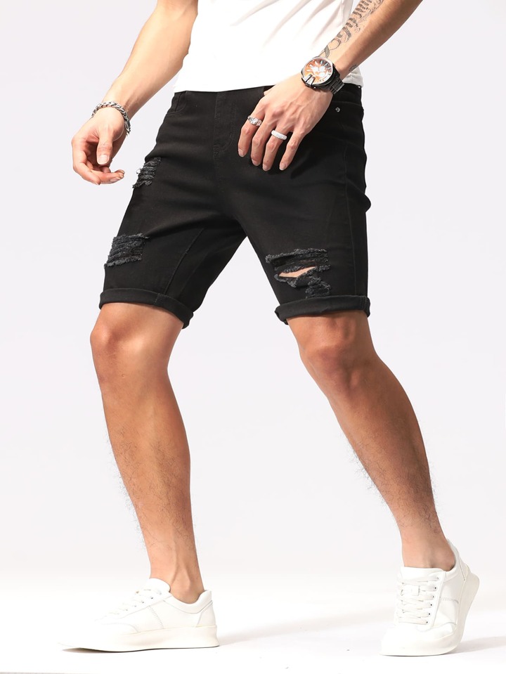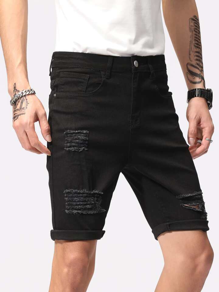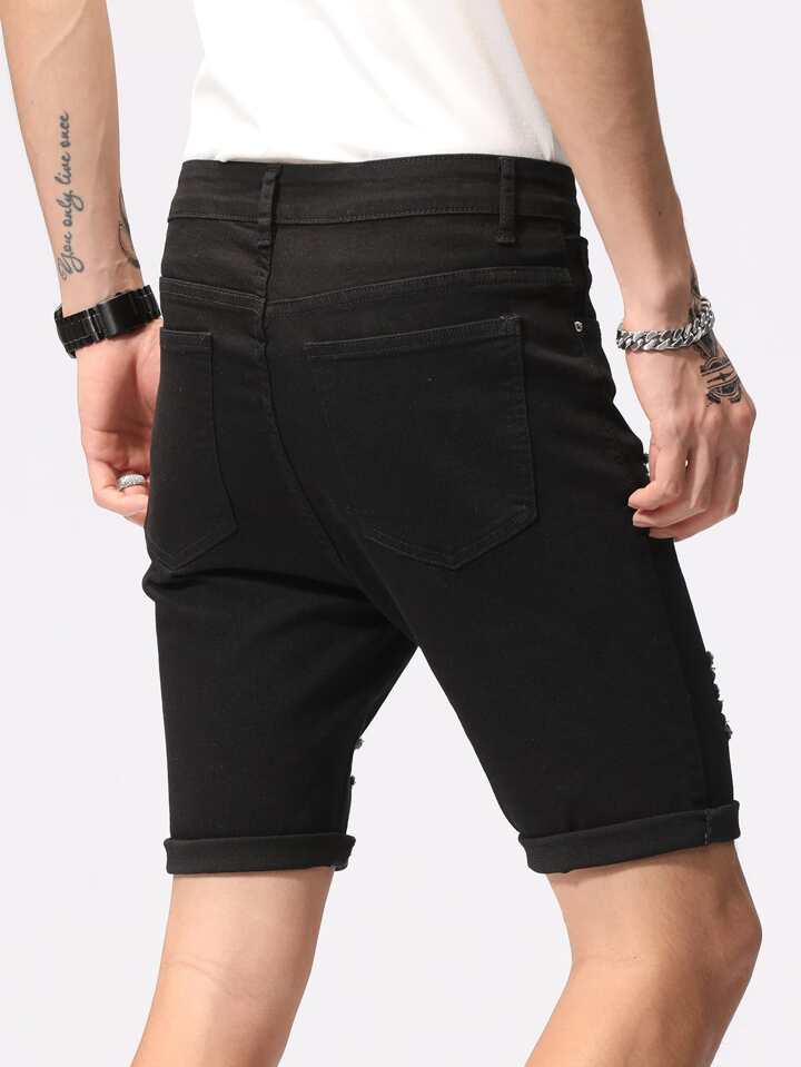 Hombres Shorts mezclilla bermuda algodón desgarro crudo bajo de doblez
