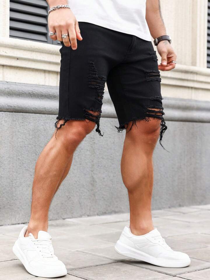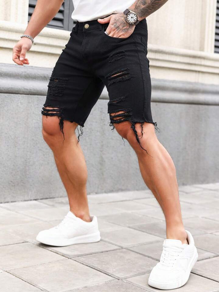 Shorts vaqueros desgastados con dobladillo en bruto para hombres, shorts de mezclilla lisos de color negro para vacaciones, regalos para esposo o novio