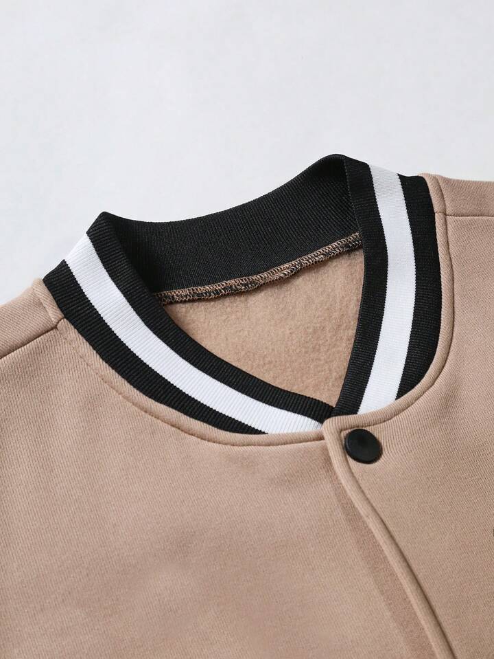 Chaqueta De Béisbol Sin Capucha Holgada Para Hombre Con Estampado De Rosas Y Eslogan, Con Mangas Caídas Y Ribetes A Rayas