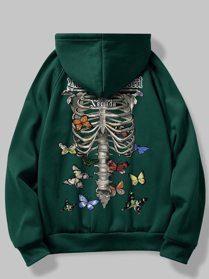 Hombres Capucha térmica con estampado de esqueleto & mariposa con cordón