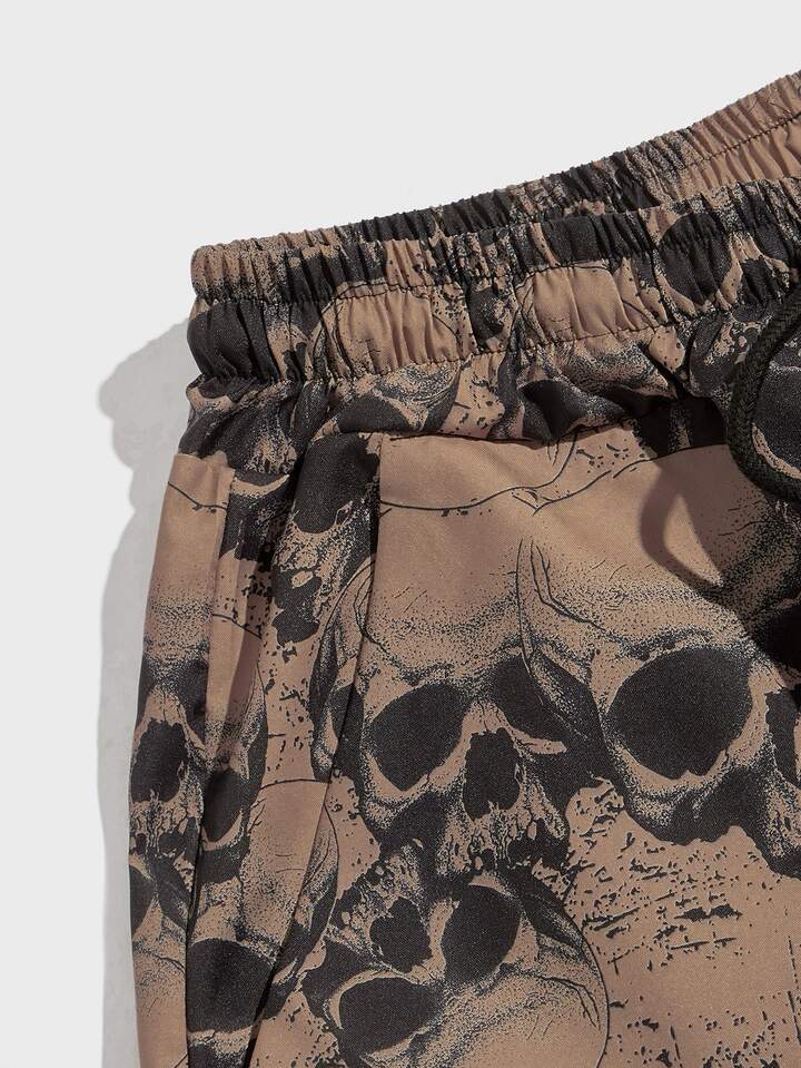 Hombres Shorts estampado de cráneo de cintura con cordón
