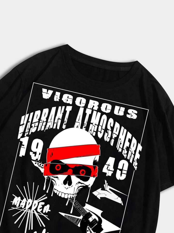 Hombres Camiseta de cráneo & con estampado de slogan