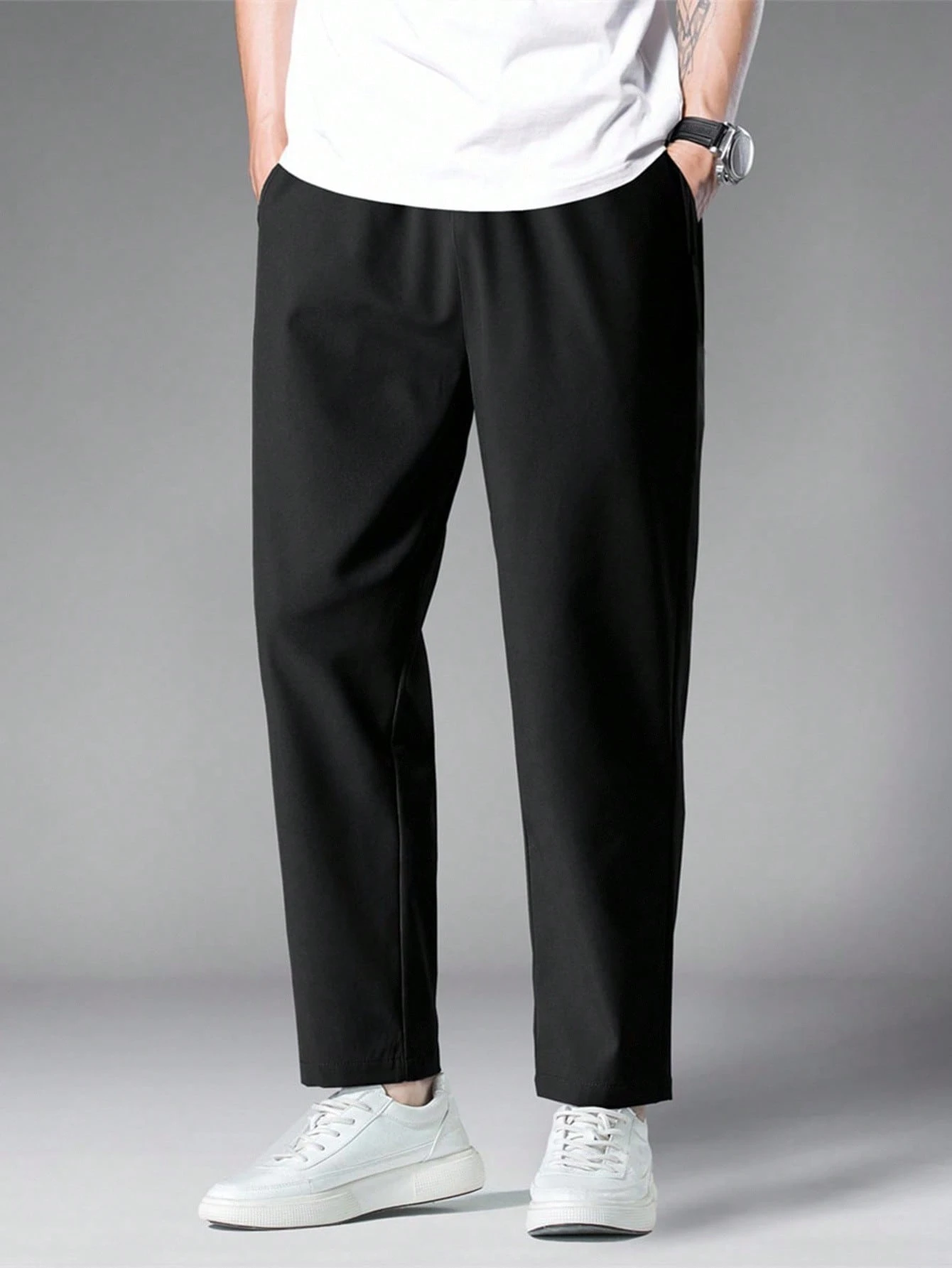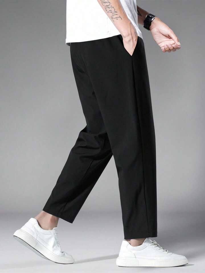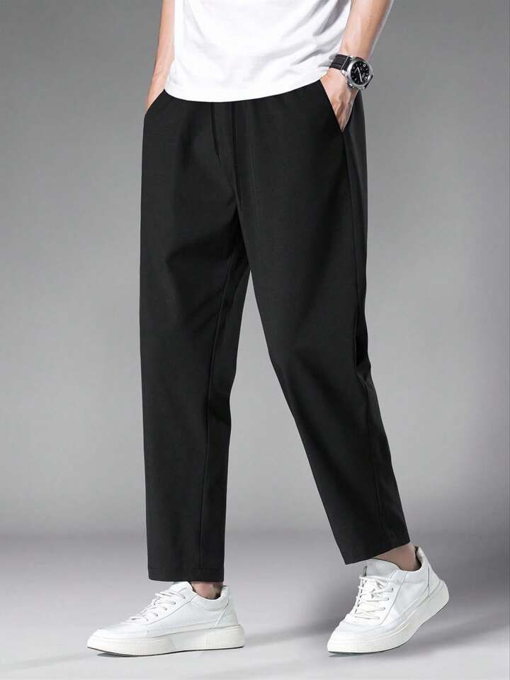 Pantalones casuales holgados de unicolor con bolsillo y corte entallado para hombre, otoño