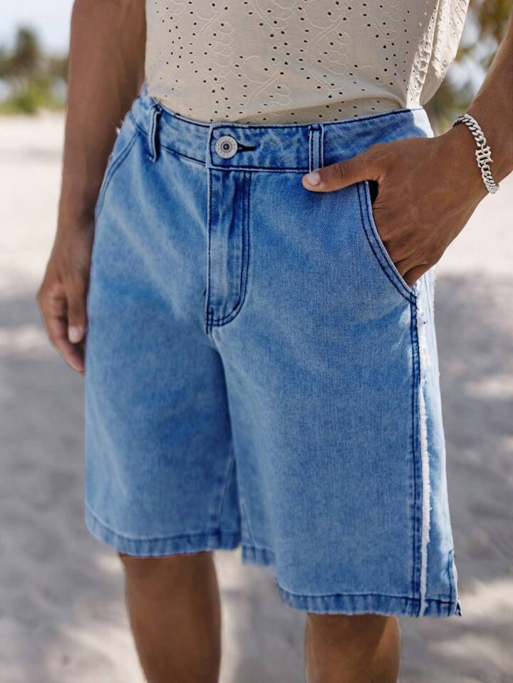 Shorts Vaqueros Holgados Con Ribete Sin Rematar Y Bolsillo Inclinado Para Hombre