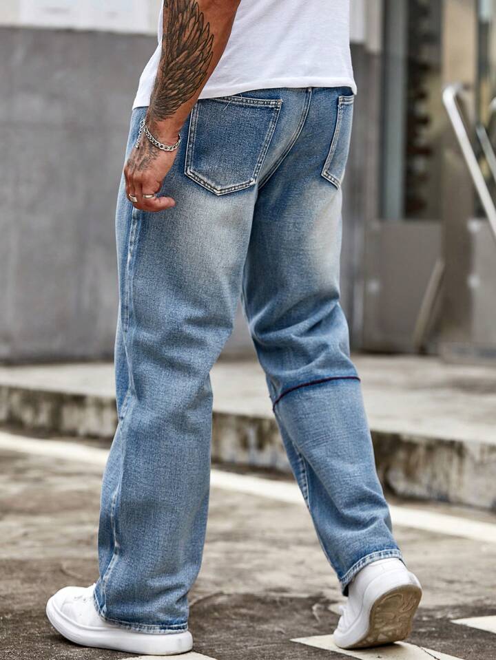 Hombres Jeans de pierna recta con bolsillo oblicuo