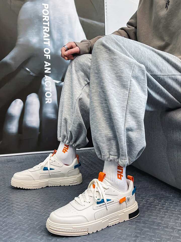 Zapatos De Skate De Cordones Para Hombres, Zapatos Casuales Para Hombres Con Dibujo Gráfico Y Eslogan En Color Bloque