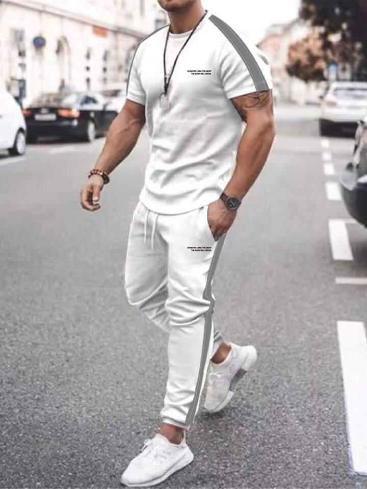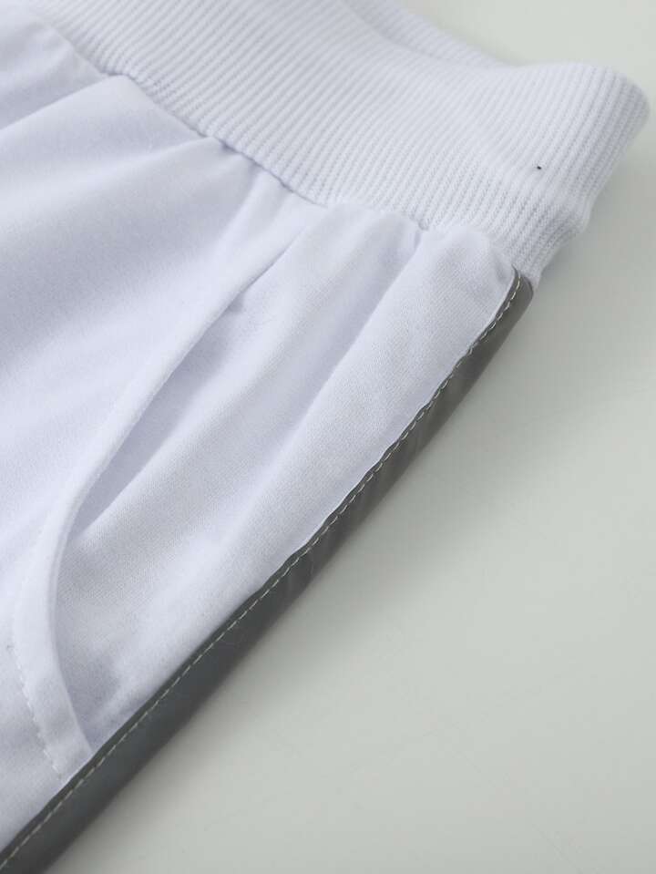 Hombres Camiseta con estampado de slogan con costura lateral en contraste & Pantalones deportivos de cintura con cordón