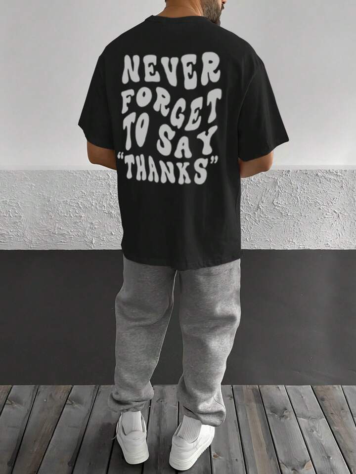 Camiseta Holgada Con Hombros Caidos Y Gráficos Y Pantalones De Sudor Con Eslogan Para Hombres