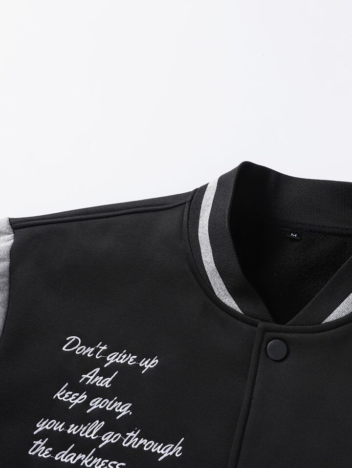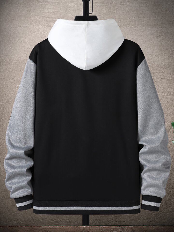 Chamarra Universitaria Holgada Para Hombre Con Rayas, Gráficos Y Slogan, Con Bloques De Colores Sin Capucha