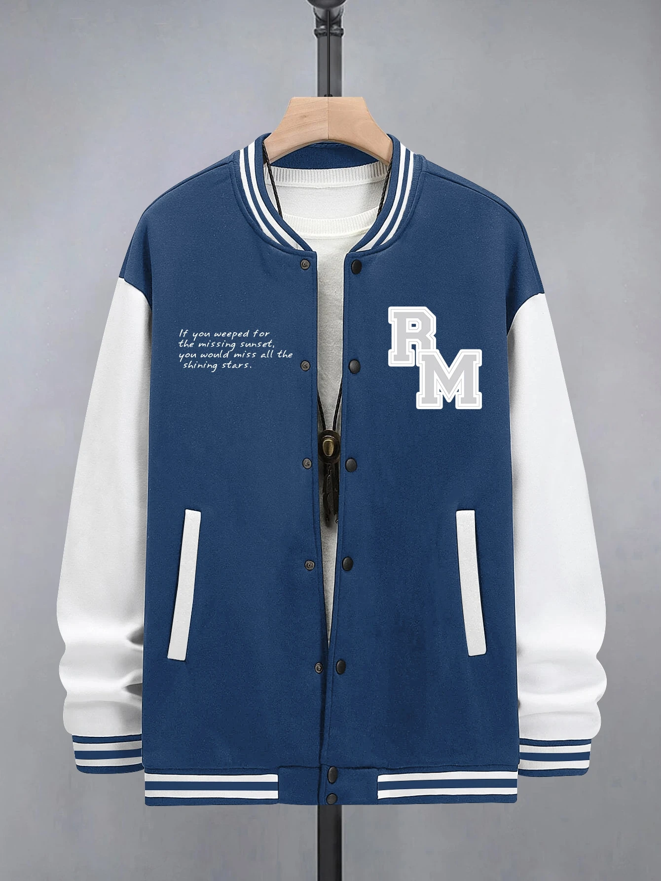 Hombres Cazadora de universidad con estampado de slogan ribete de rayas sin camiseta