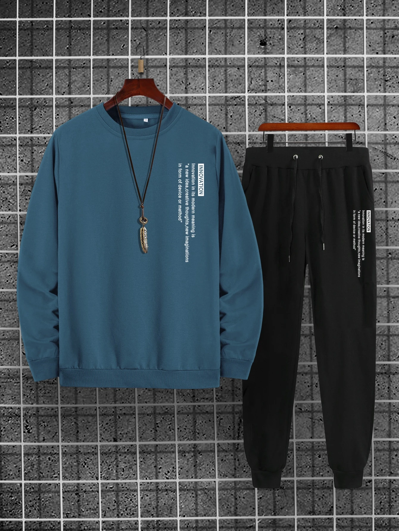Sudadera con estampado de slogan con pantalones deportivos de cintura con cordón