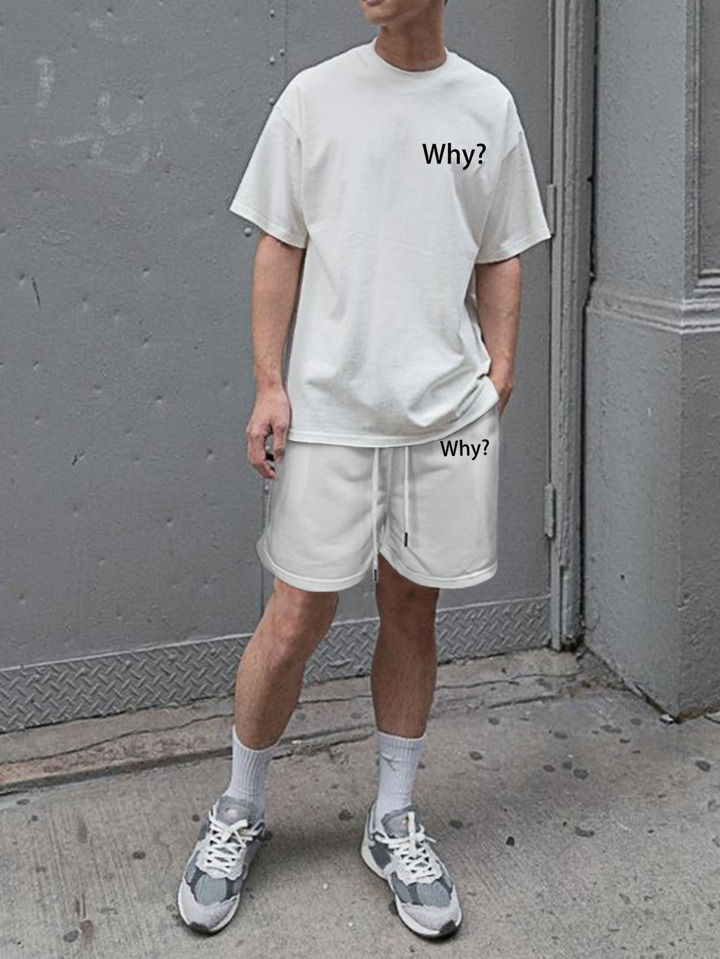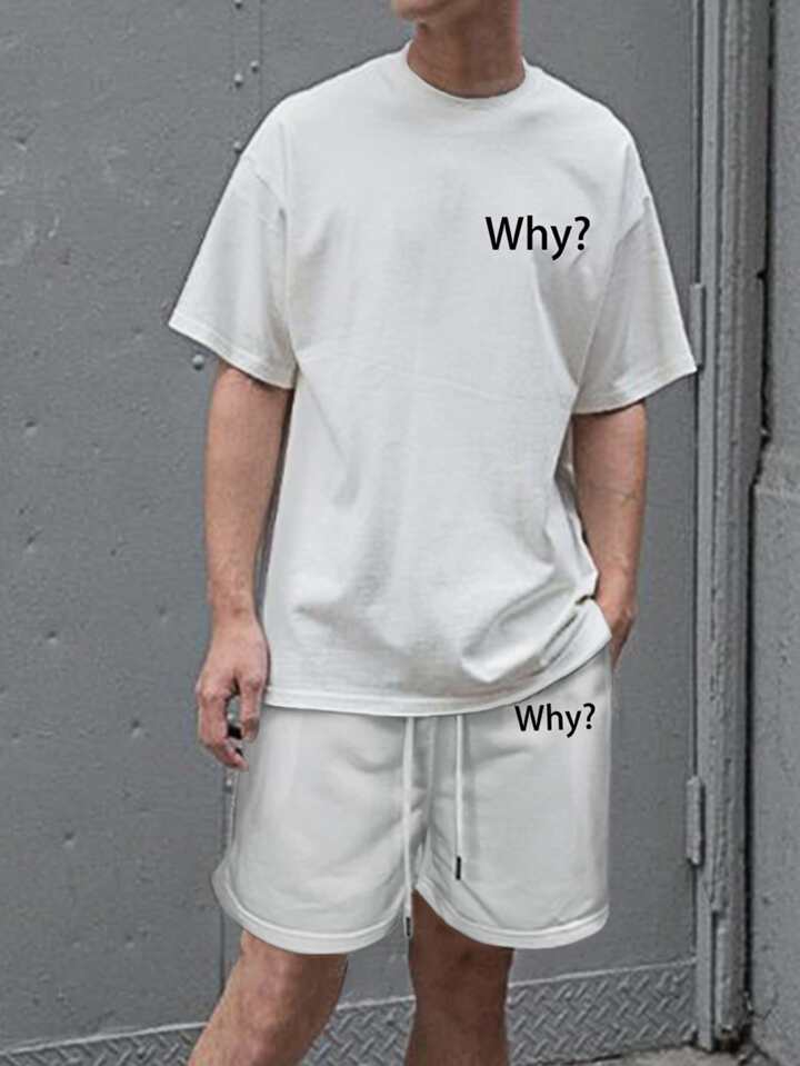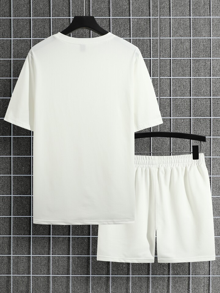 Hombres con estampado de slogan Camiseta & de cintura con cordón Shorts