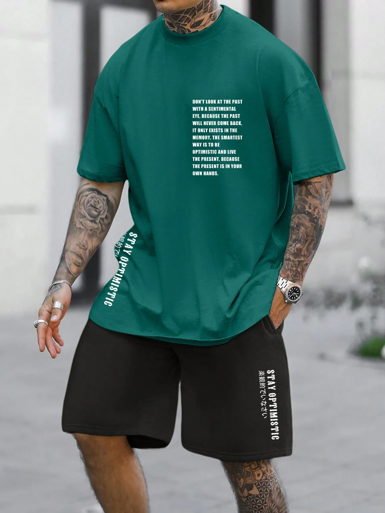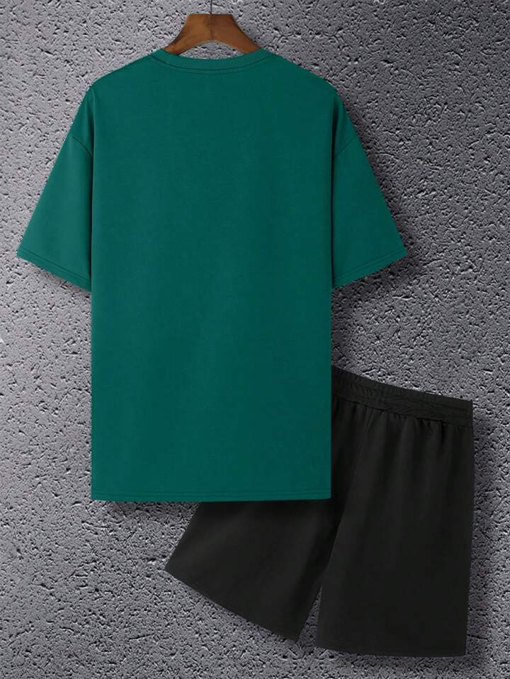 Hombres Shorts con camiseta con estampado de slogan