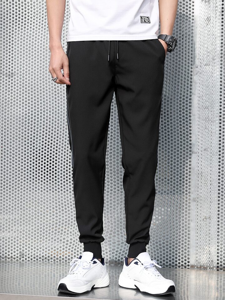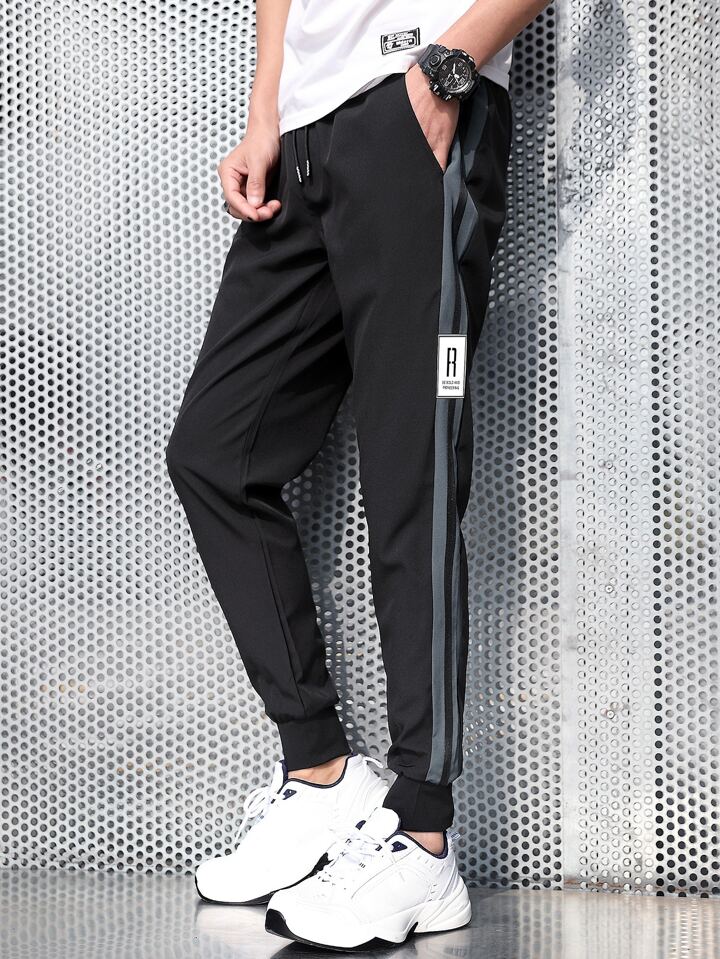 Pantalones De Cintura Con Cordón Para Hombre Con Detalle De Parche De Eslogan Y Cinta De Contraste En El Lateral