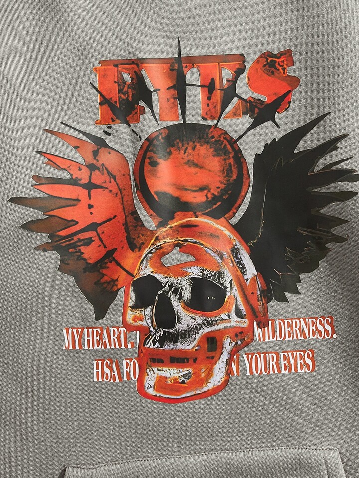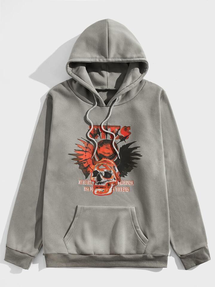 Hombres Capucha térmica con slogan & estampado de cráneo con bolsillo con cordón