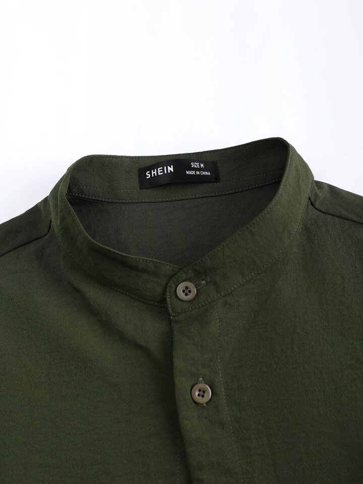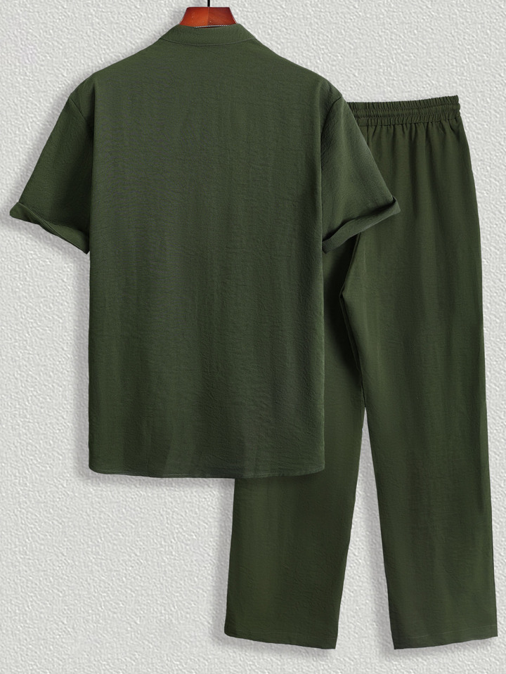 Hombres Camisa unicolor con botón delantero & Pantalones de cintura con cordón sin camiseta