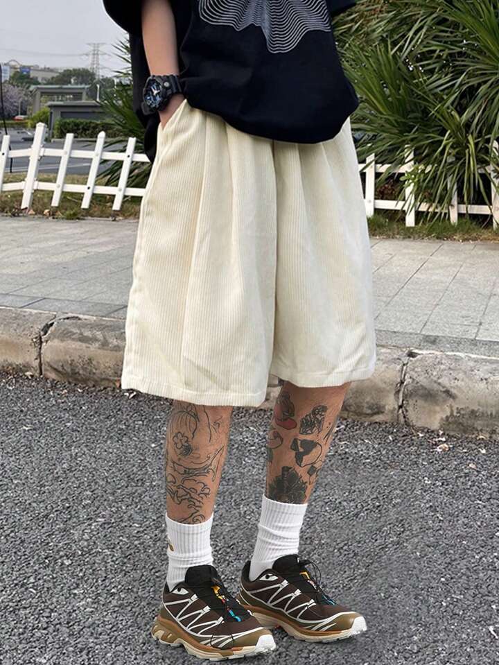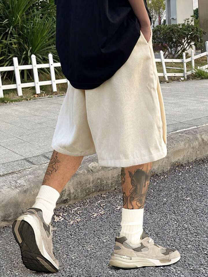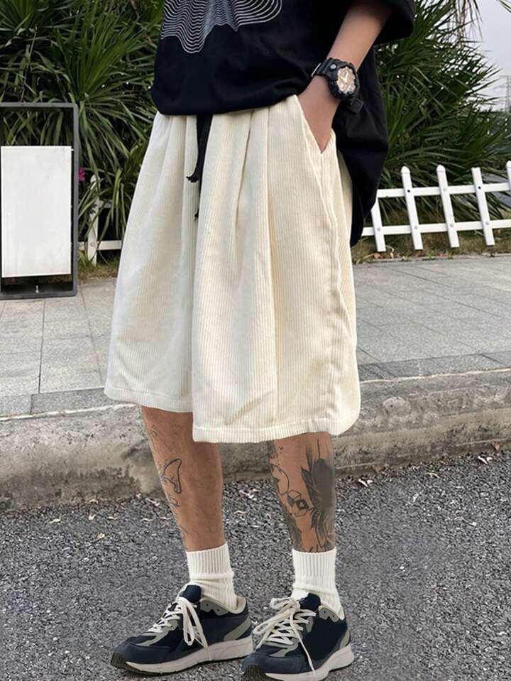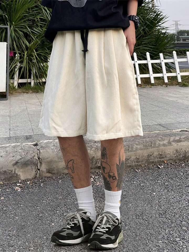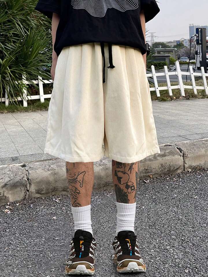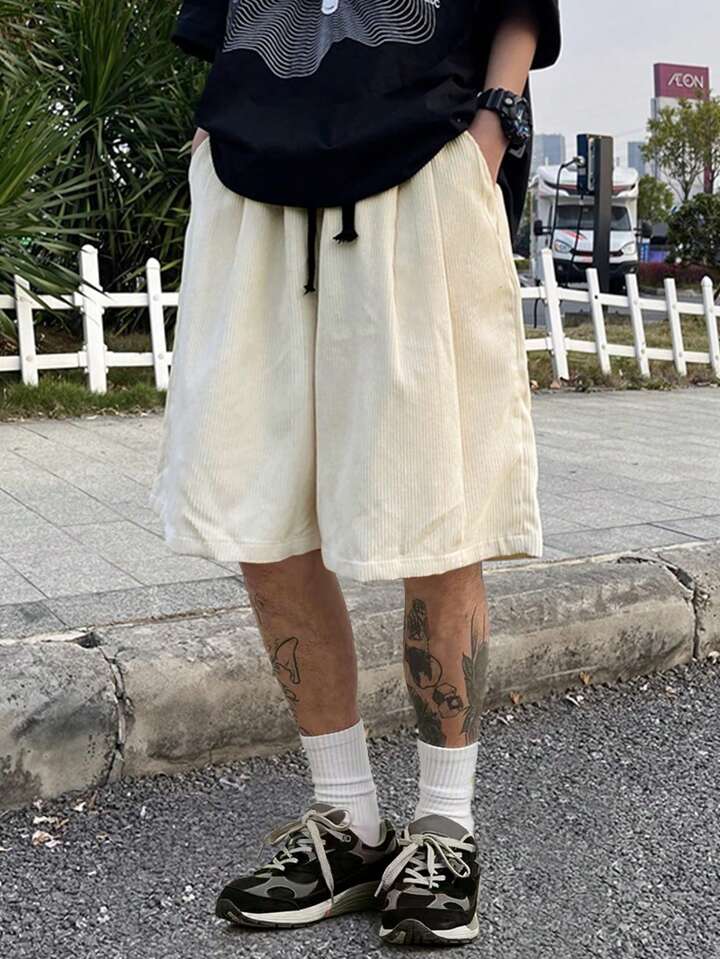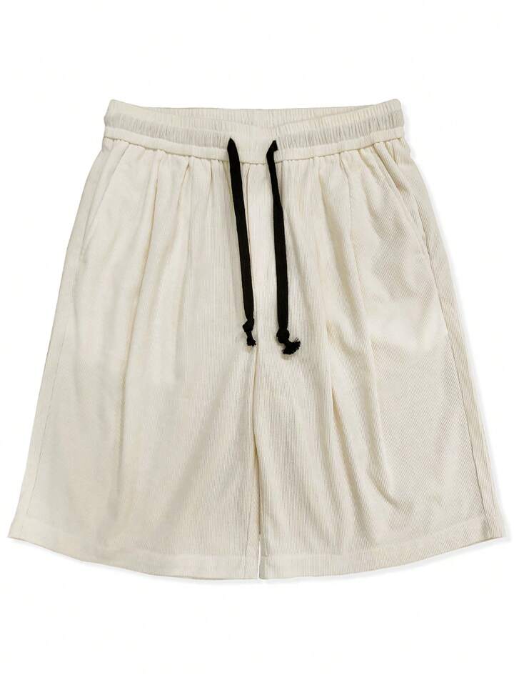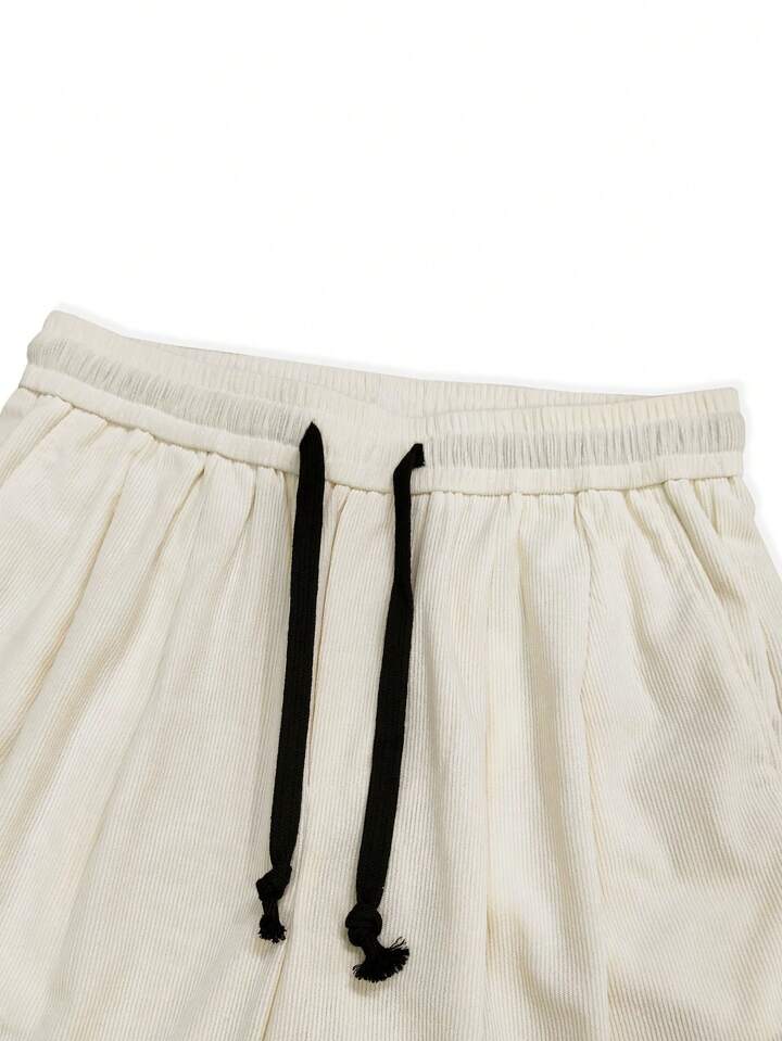 Pantalones Cortos Flojos Para Hombres De Color Sólido Con Cintura Ajustable Con Cordón Y Bolsillos Inclinados