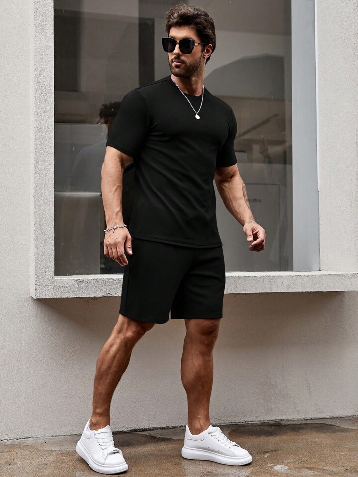 Hombres Camiseta unicolor & de cintura con cordón Shorts