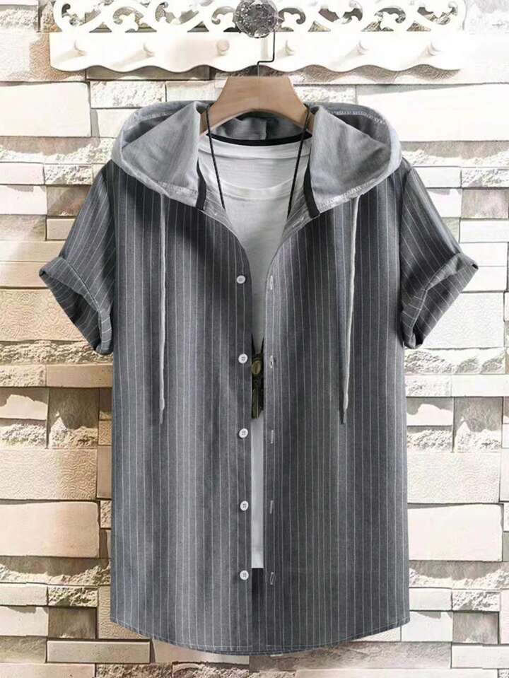 Hombres Camisa de rayas con cordón con capucha sin camiseta